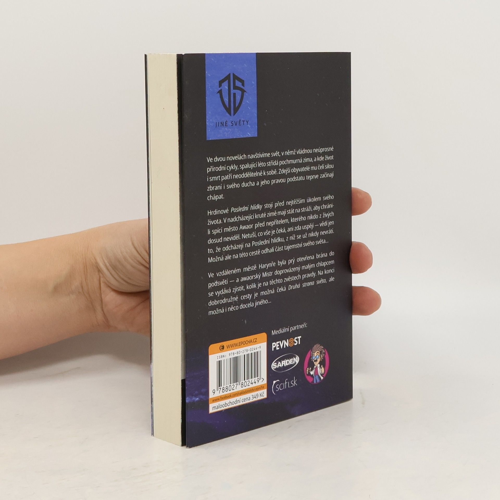 Ve dvou novelách navštívíme svět, v němž vládnou neúprosné přírodní cykly, spalující léto střídá pochmurná zima, a kde život i smrt patří neoddělitelně k sobě. Jeho obyvatelé mu čelí silou zbraní i svého ducha a jeho pravou podstatu teprve začínají chápat.Hrdinové Poslední hlídky stojí před nejtěžším úkolem svého života. V nadcházející kruté zimě mají stát na stráži, aby chránili spící město Awaor před nepřítelem, kterého nikdo z živých dosud neviděl. Netuší, co vše je čeká, ani zda uspějí — vědí jen to, že odcházejí na Poslední hlídku, z níž se už nikdy nevrátí. Možná ale na této cestě odhalí část tajemství svého světa…Ve vzdáleném městě Harynře byla prý otevřena brána do podsvětí — a awaorský Mistr doprovázený malým chlapcem se vydává zjistit, kolik je na těchto zvěstech pravdy. Na konci dobrodružné cesty je možná čeká Druhá strana světa, ale možná i něco docela jiného…