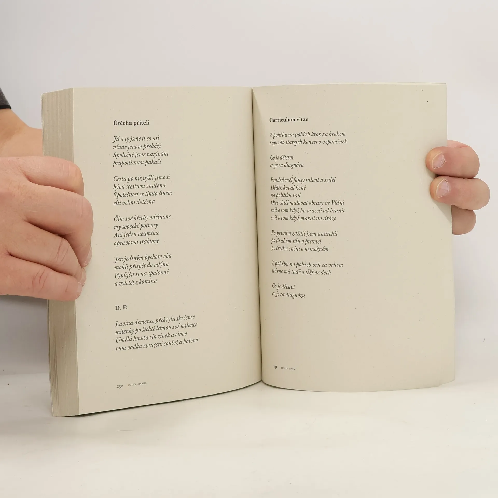 Odpovědi dvanácti českých básníků (např. E. Bondy, V. Kremlička, I. M. Jirous, V. Brabenec, I. Wernisch, J. H. Krchovský) na dotazy po jejich osobním životě. Výpovědi dvanácti básníků, kteří formou jakéhosi dotazníku přibližují svůj rodinný a "třídní" původ, dětství, školní léta, zaměstnání a životní směřování. Výpověď každého z protagonistů uvozují jeho verše, vybrané pro dokumentární, nikoli literární kvality. Výběr zpovídaných je dán osobním vztahem autora. Většinu tvoří signatáři Českých dětí a okruh kolem skupiny Plastic People. Úroveň sdělení, daná osobností zpovídaného, je velmi rozkolísaná, někdy uvádějící čtenáře až do trapných rozpaků. Zralí autoři typu Hejdy, Bondyho či Jirouse (za všechny) dokáží naopak i na malé ploše vystihnout podstatné rysy svého života spojeného s undergroundem bez exhibice a způsobem, poučným i pro nezúčastněné.