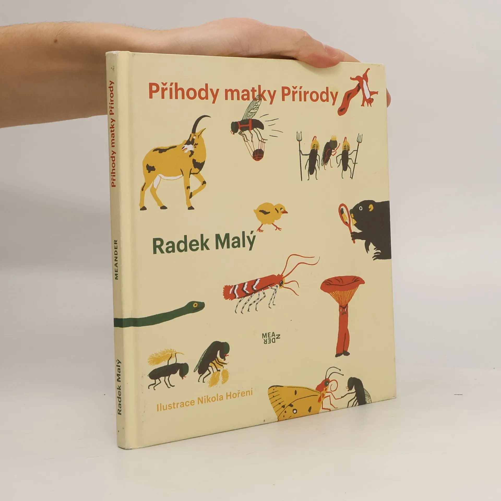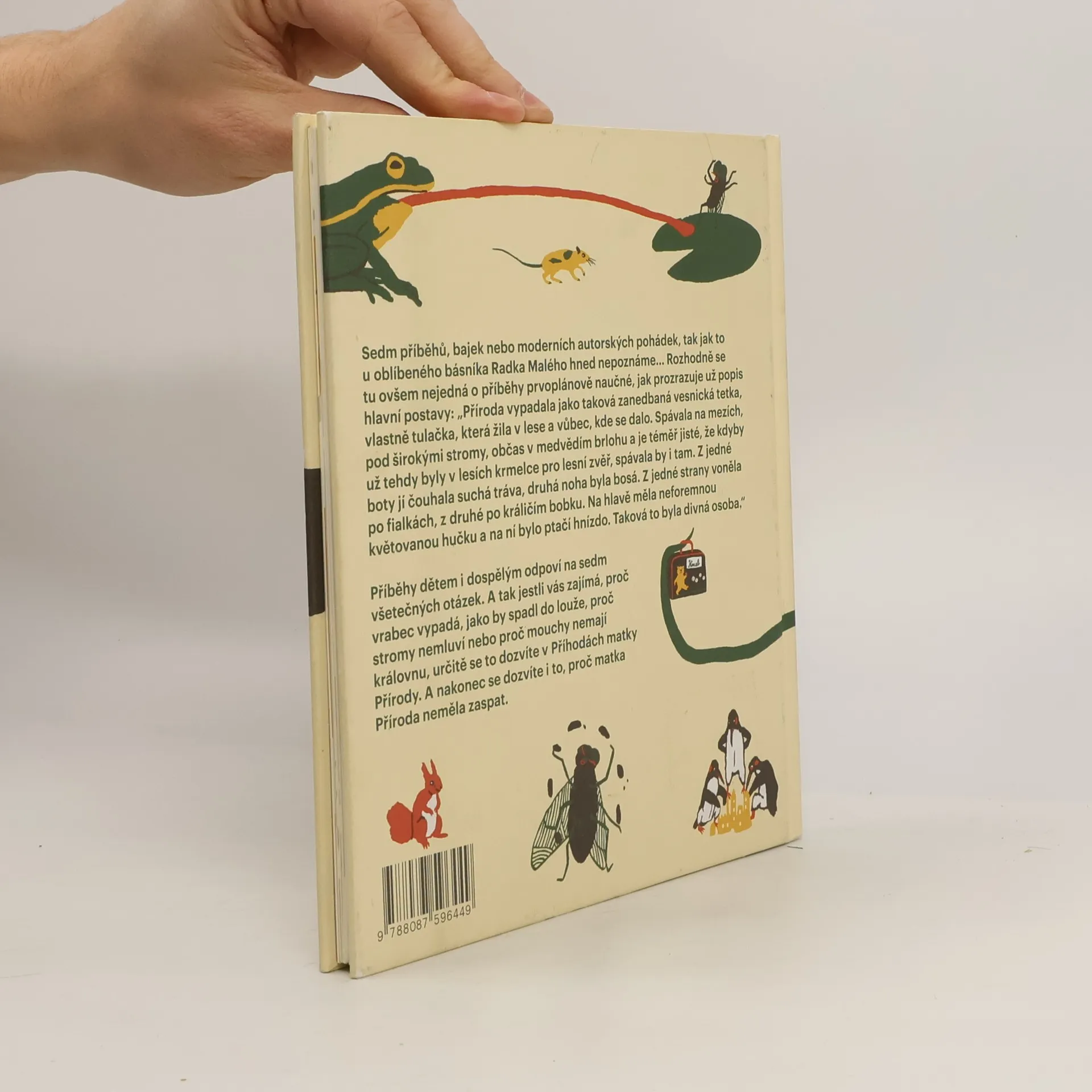 Sedm příběhů, bajek nebo moderních autorských pohádek, tak jak to u oblíbeného básníka Radka Malého hned nepoznáme… Rozhodně se tu ovšem nejedná o příběhy prvoplánově naučné, jak prozrazuje už popis hlavní postavy: „Příroda vypadala jako taková zanedbaná vesnická tetka, vlastně tulačka, která žila v lese a vůbec, kde se dalo. Spávala na mezích, pod širokými stromy, občas v medvědím brlohu a je téměř jisté, že kdyby už tehdy byly v lesích krmelce pro lesní zvěř, spávala by i tam. Z jedné boty jí čouhala suchá tráva, druhá noha byla bosá. Z jedné strany voněla po fialkách, z druhé po králičím bobku. Na hlavě měla neforemnou květovanou hučku a na ní bylo ptačí hnízdo. Taková to byla divná osoba.“ Příběhy dětem i dospělým odpoví na sedm všetečných otázek. A tak jestli vás zajímá, proč vrabec vypadá, jako by spadl do louže, proč stromy nemluví nebo proč mouchy nemají královnu, určitě se to dozvíte v Příhodách matky Přírody. A nakonec se dozvíte i to, proč matka Příroda neměla zaspat.