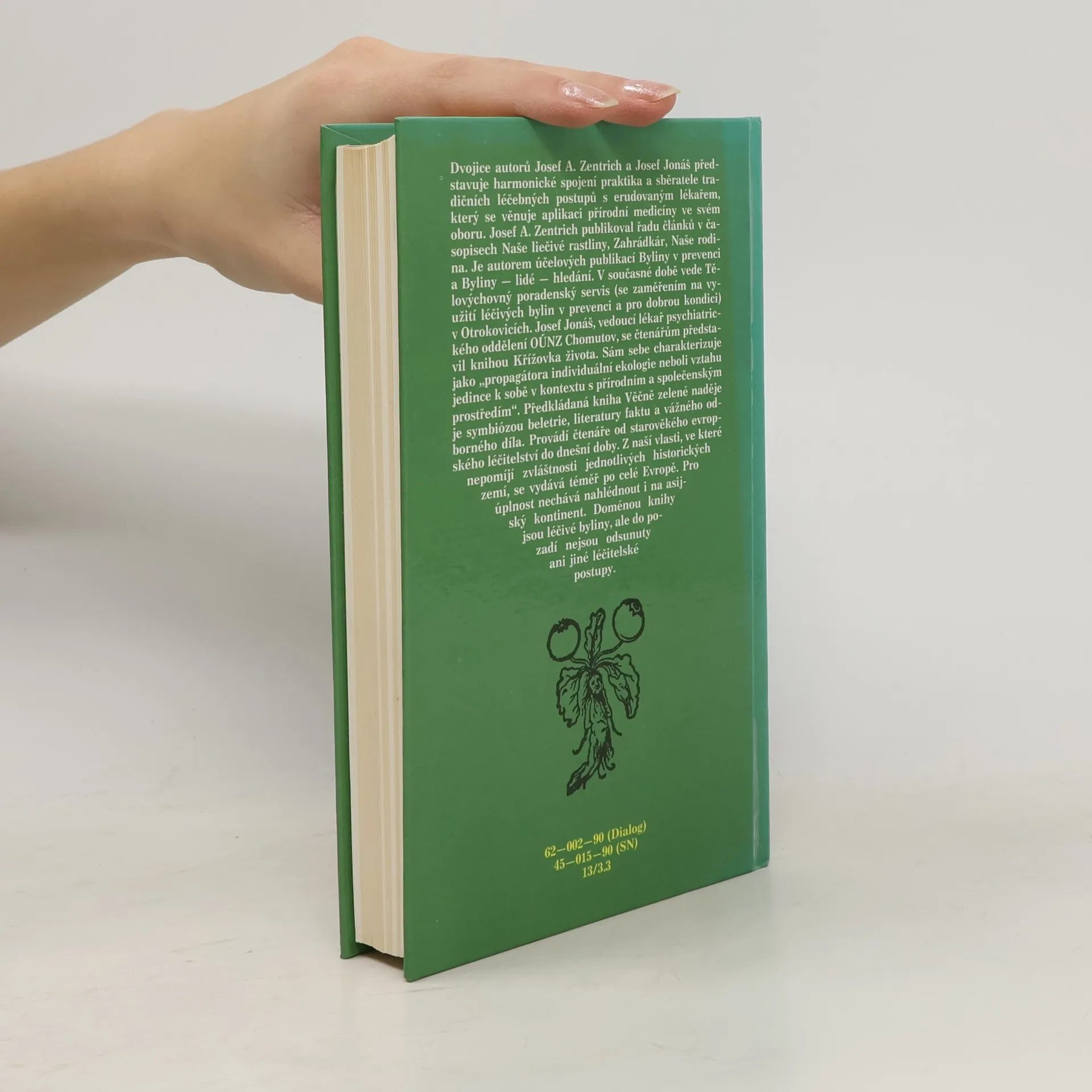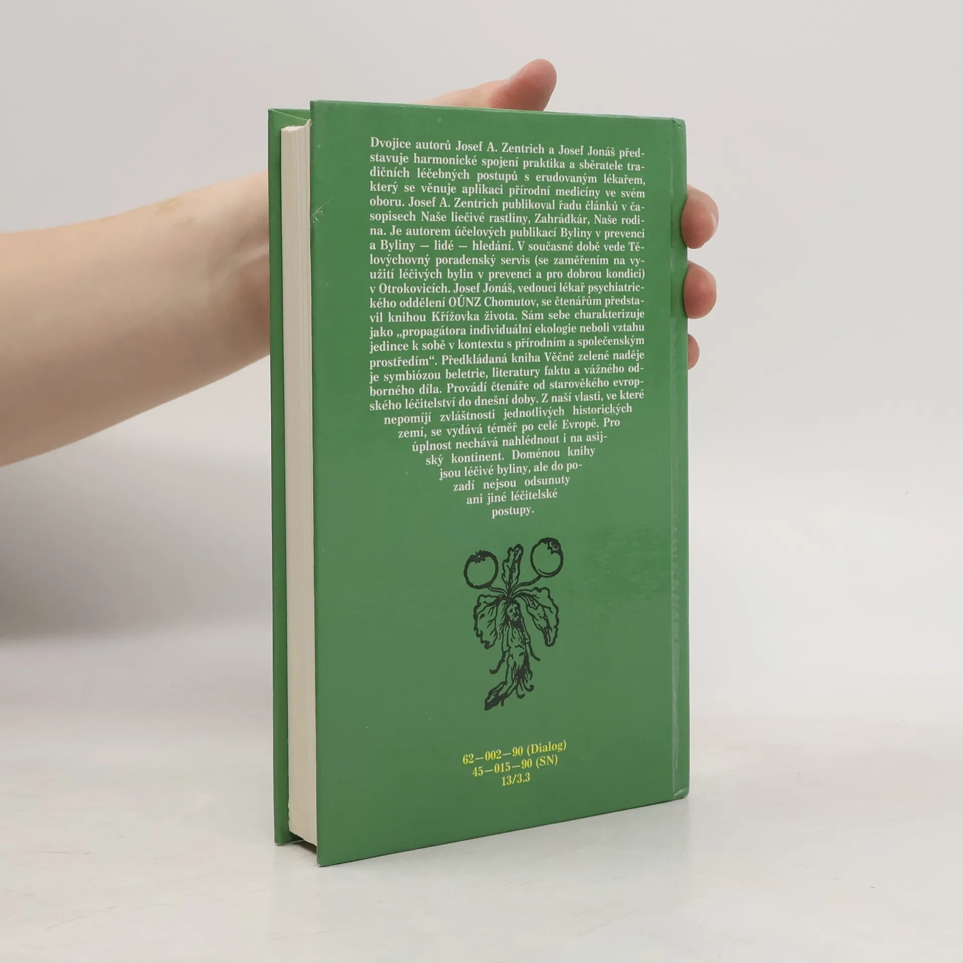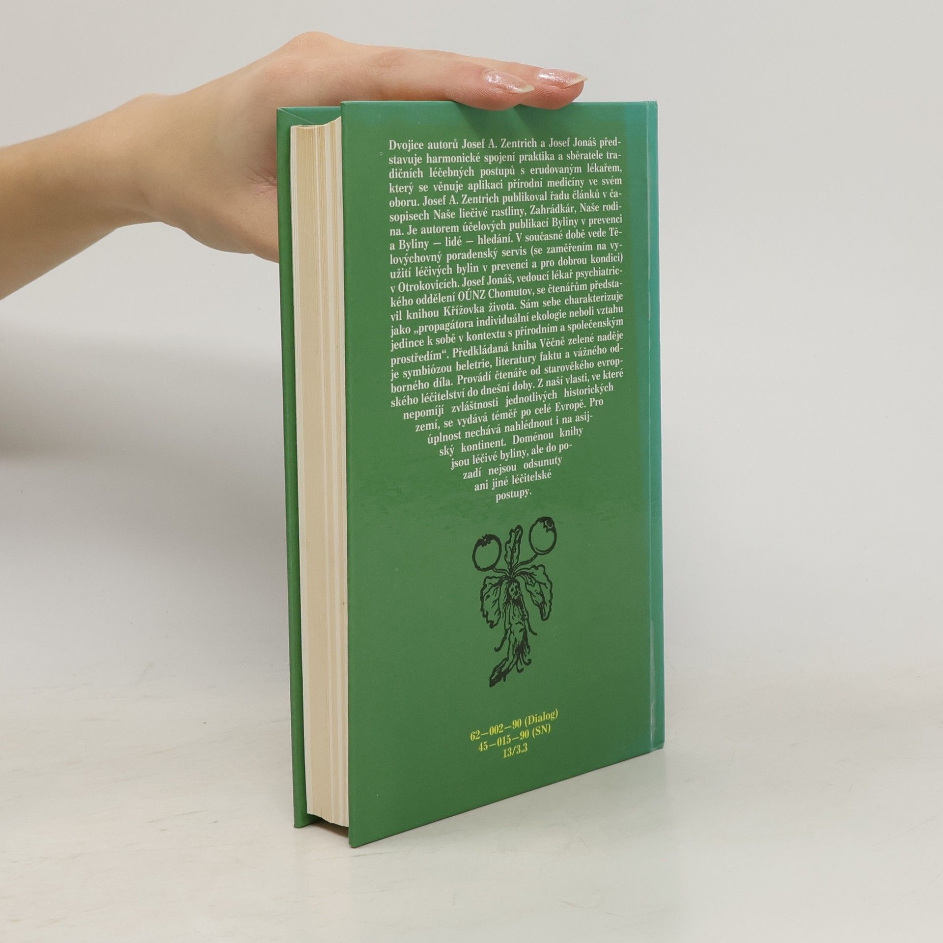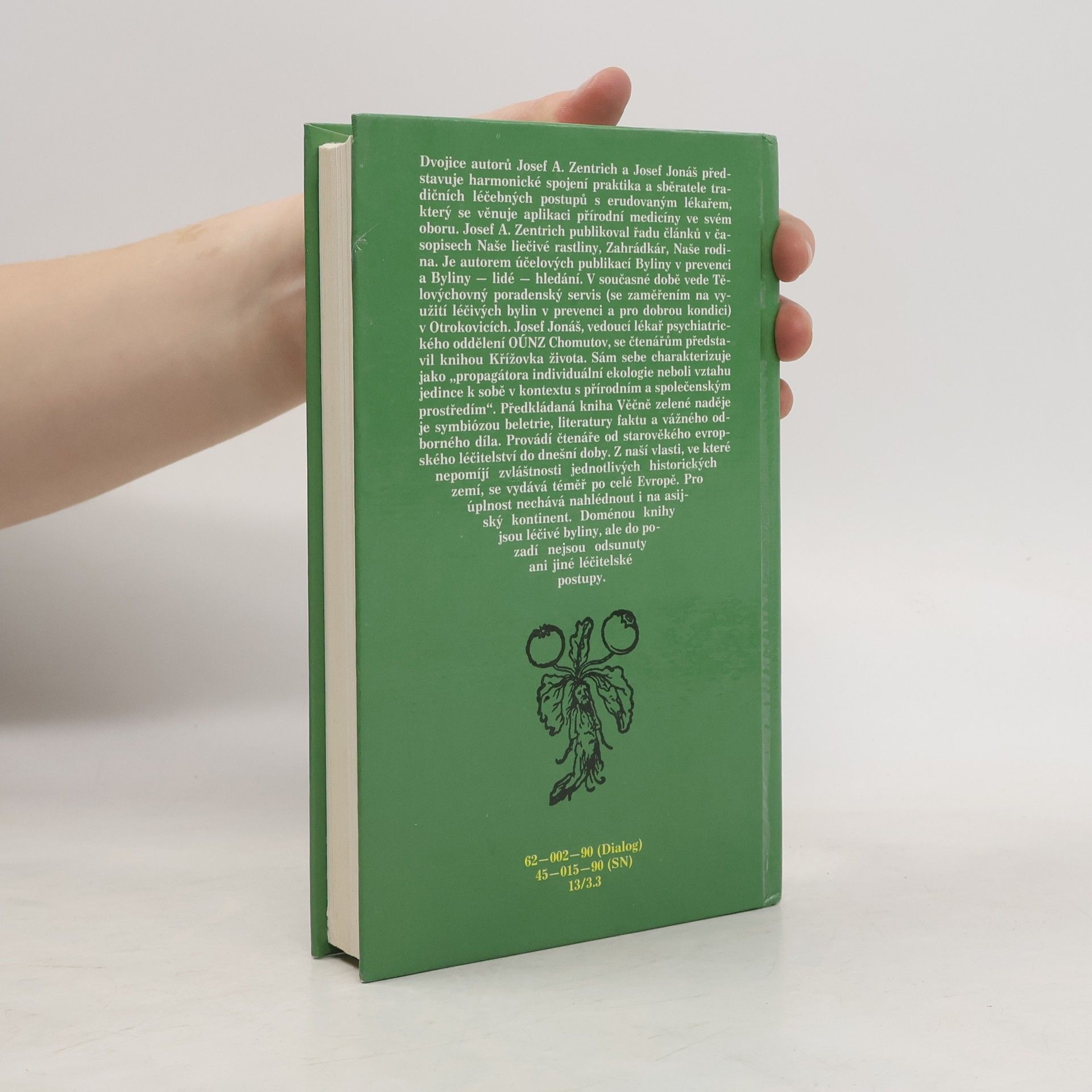 Publikace seznamuje s vývojem lidového přírodního léčitelství, s jeho způsoby, prostředky a recepty. Dotisk v r. 1990 (brož.) Dvojice autorů Josef A. Zentrich a Josef Jonáš představuje harmonické spojení praktika a sběratele tradičních léčebných postupů s erudovaným lékařem, který sevěnuje aplikaci přírodní medicíny ve svém oboru. Josef A. Zentrich publikoval řadu článků v časopisech Naše liečivé rastliny, Zahrádkár, Naše rodina. Je autorem účelových publikací Byliny v prevenci a Byliny - lidé - hledání. V současné době vede Tělovýchovný poradenský servis (se zaměřením na využití léčivých bylin v prevenci a pro dobrou kondici) v Otrokovicích. Josef Jonáš, vedoucí lékař psychiatrického oddělení OÚNZ Chomutov, se čtenářům představil knihou Křížovka života. Sám sebe charakterizuje jako "progragátora individuální ekologie neboli vztahu jedince k sobě v kontextu s přírodním a společenským prostředím". Předkládaná kniha Věčně zelené naděje je symbiózou beletrie, literatury faktu a vážného odborného díla. Provádí čtenáře od starověkého evropského léčitelství do dnešní doby. Z naší vlasti, ve které nepomíjí zvláštnosti jednotlivých historických zemí, se vydává téměř po celé Evropě. pro úplnost nechává nahlédnout i a asijský kontinent. Doménou knihy jsou léčivé byliny, ale do pozadí nejsou odsunuty ani jiné léčitelské postupy.
