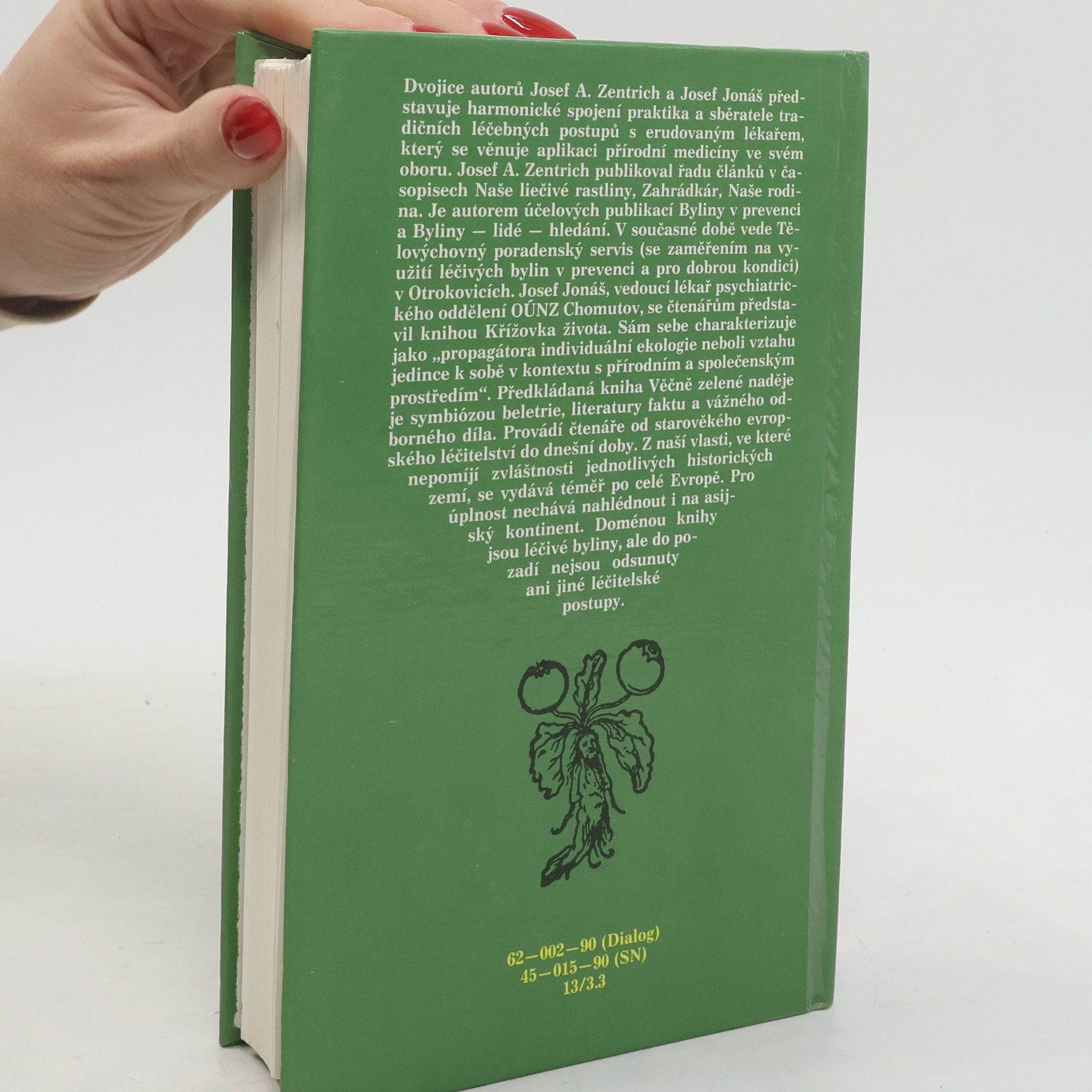 Publikace seznamuje s vývojem lidového přírodního léčitelství, s jeho způsoby, prostředky a recepty. Dotisk v r. 1990 (brož.) Dvojice autorů Josef A. Zentrich a Josef Jonáš představuje harmonické spojení praktika a sběratele tradičních léčebných postupů s erudovaným lékařem, který se věnuje aplikaci přírodní medicíny ve svém oboru. Josef A. Zentrich publikoval řadu článků v časopisech Naše liečivé rastliny, Zahrádkár, Naše rodina. Je autorem účelových publikací Byliny v prevenci a Byliny - lidé - hledání. V současné době vede Tělovýchovný poradenský servis (se zaměřením na využití léčivých bylin v prevenci a pro dobrou kondici) v Otrokovicích. Josef Jonáš, vedoucí lékař psychiatrického oddělení OÚNZ Chomutov, se čtenářům představil knihou Křížovka života. Sám sebe charakterizuje jako "progragátora individuální ekologie neboli vztahu jedince k sobě v kontextu s přírodním a společenským prostředím". Předkládaná kniha Věčně zelené naděje je symbiózou beletrie, literatury faktu a vážného odborného díla. Provádí čtenáře od starověkého evropského léčitelství do dnešní doby. Z naší vlasti, ve které nepomíjí zvláštnosti jednotlivých historických zemí, se vydává téměř po celé Evropě. pro úplnost nechává nahlédnout i a asijský kontinent. Doménou knihy jsou léčivé byliny, ale do pozadí nejsou odsunuty ani jiné léčitelské postupy.