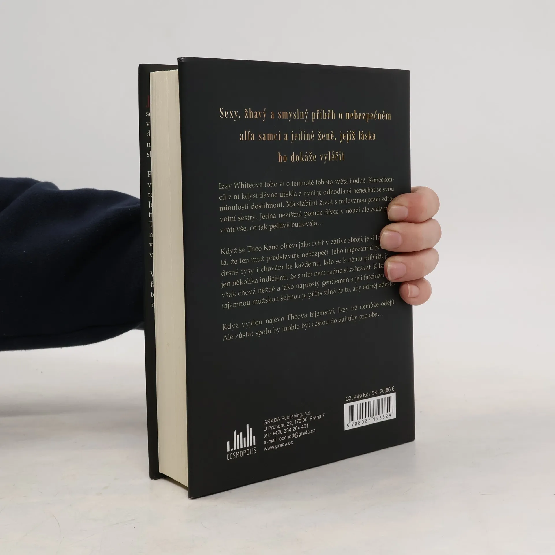 Sexy, žhavý a hříšný příběh o nebezpečném alfa samci a jediné ženě, jejíž láska ho dokáže vyléčit. Neodolatelný a nebezpečný alfa samec s tajemstvím. Křehká a zlomená žena s velkou bolestí. Ona jediná se mu dokáže přiblížit – pokud se oba dokážou vzájemně ochránit před svými démony. Izzy Whiteová toho ví o temnotě tohoto světa hodně. Koneckonců z ní kdysi dávno utekla a nyní je odhodlaná nenechat se svou minulostí dostihnout. Má stabilní život s milovanou prací zdravotní sestry. Jedna nezištná pomoc dívce v nouzi ale zcela převrátí vše, co tak pečlivě budovala…Když se Theo Kane objeví jako rytíř v zářivé zbroji, je si Izzy jistá, že ten muž představuje nebezpečí. Jeho impozantní postava, drsné rysy i chování ke každému, kdo se k němu přiblíží, jsou jen několika indiciemi, že s ním není radno si zahrávat. K Izzy se však chová něžně a jako naprostý gentleman a její fascinace tou tajemnou mužskou šelmou je příliš silná na to, aby od něj odešla. Když vyjdou najevo Theova tajemství, Izzy už nemůže odejít. Ale zůstat spolu by mohlo být cestou do záhuby pro oba…