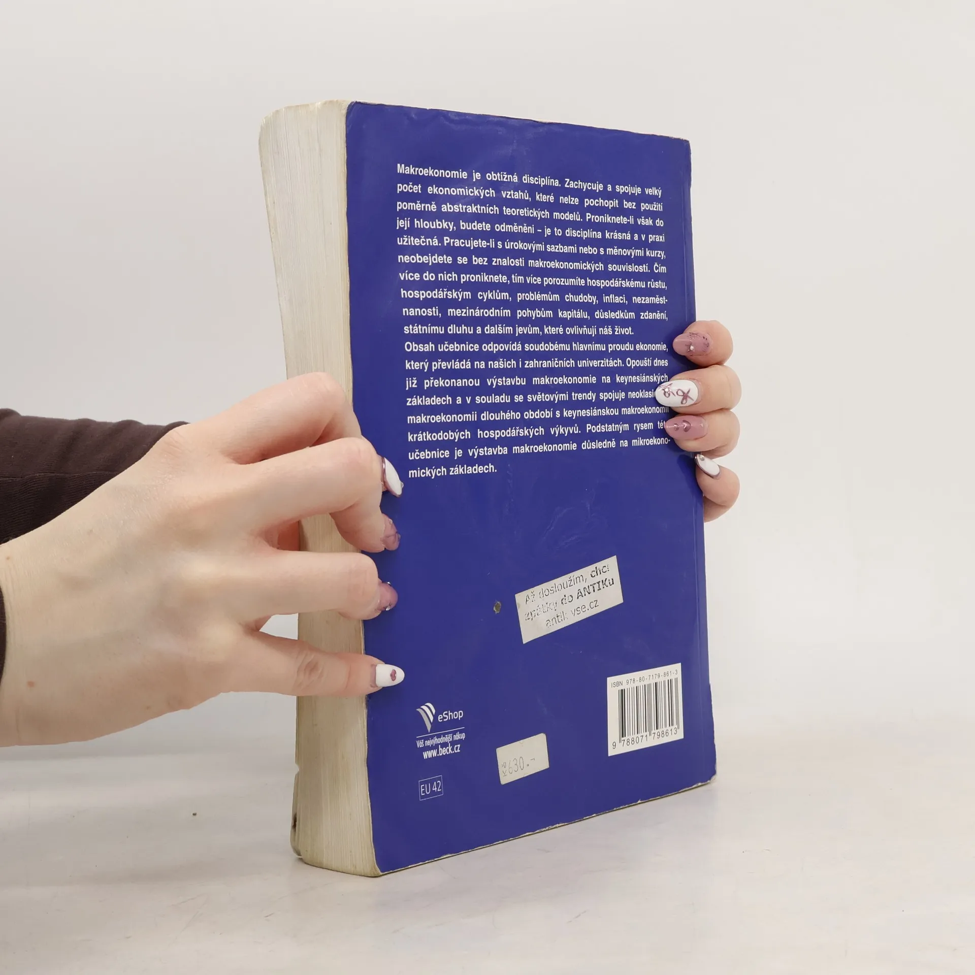 Obsah již druhého vydání této oblíbené učebnice makroekonomie odpovídá soudobému hlavnímu proudu ekonomie, který převládá na našich i zahraničních univerzitách. Opouští dnes již překonanou výstavbu makroekonomie na keynesiánských základech a v souladu se světovými trendy spojuje neoklasickou makroekonomii dlouhého období s keynesiánskou makroekonomií krátkodobých hospodářských výkyvů. Podstatným rysem této učebnice je výstavba makroekonomie důsledně na mikroekonomických základech. Autor učebnice, Prof. Ing. Robert Holman, CSc., je profesorem ekonomie na Fakultě národohospodářské Vysoké školy ekonomické v Praze. Působí též jako člen Bankovní rady ČNB. Je autorem učebnic Ekonomie a Mikroekonomie a hlavním spoluautorem knihy Dějiny ekonomického myšlení. Je rovněž jedním z vedoucích autorů Ekonomického slovníku. Často přispívá do ekonomických periodik články zaměřenými na aktuální otázky hospodářského vývoje a hospodářské politiky. V letech 1992–1997 působil jako ekonomický poradce předsedy vlády. Své zkušenosti z té doby využil k sepětí ekonomické teorie a hospodářsko-politické praxe, což je i základním rysem této knihy.