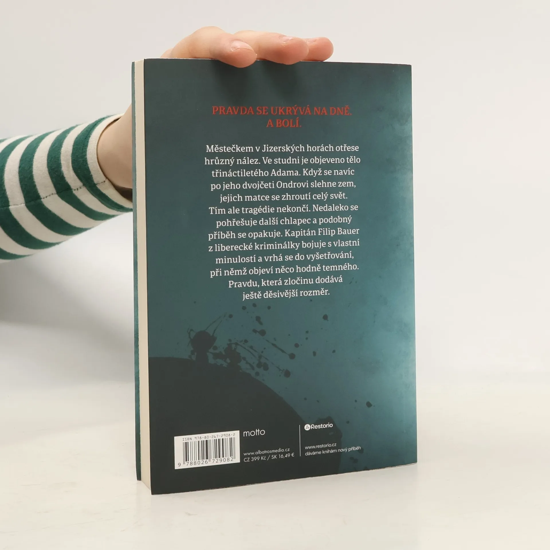 Městečkem v Jizerských horách otřese hrůzný nález. Ve studni je objeveno tělo třináctiletého Adama. Když se navíc po jeho dvojčeti Ondrovi slehne zem, jejich matce se zhroutí celý svět. Tím ale tragédie nekončí. Nedaleko se pohřešuje další chlapec a podobný příběh se opakuje. Kapitán Filip Bauer z liberecké kriminálky bojuje s vlastní minulostí a vrhá se do vyšetřování, při němž objeví něco hodně temného. Pravdu, která zločinu dodává ještě děsivější rozměr.