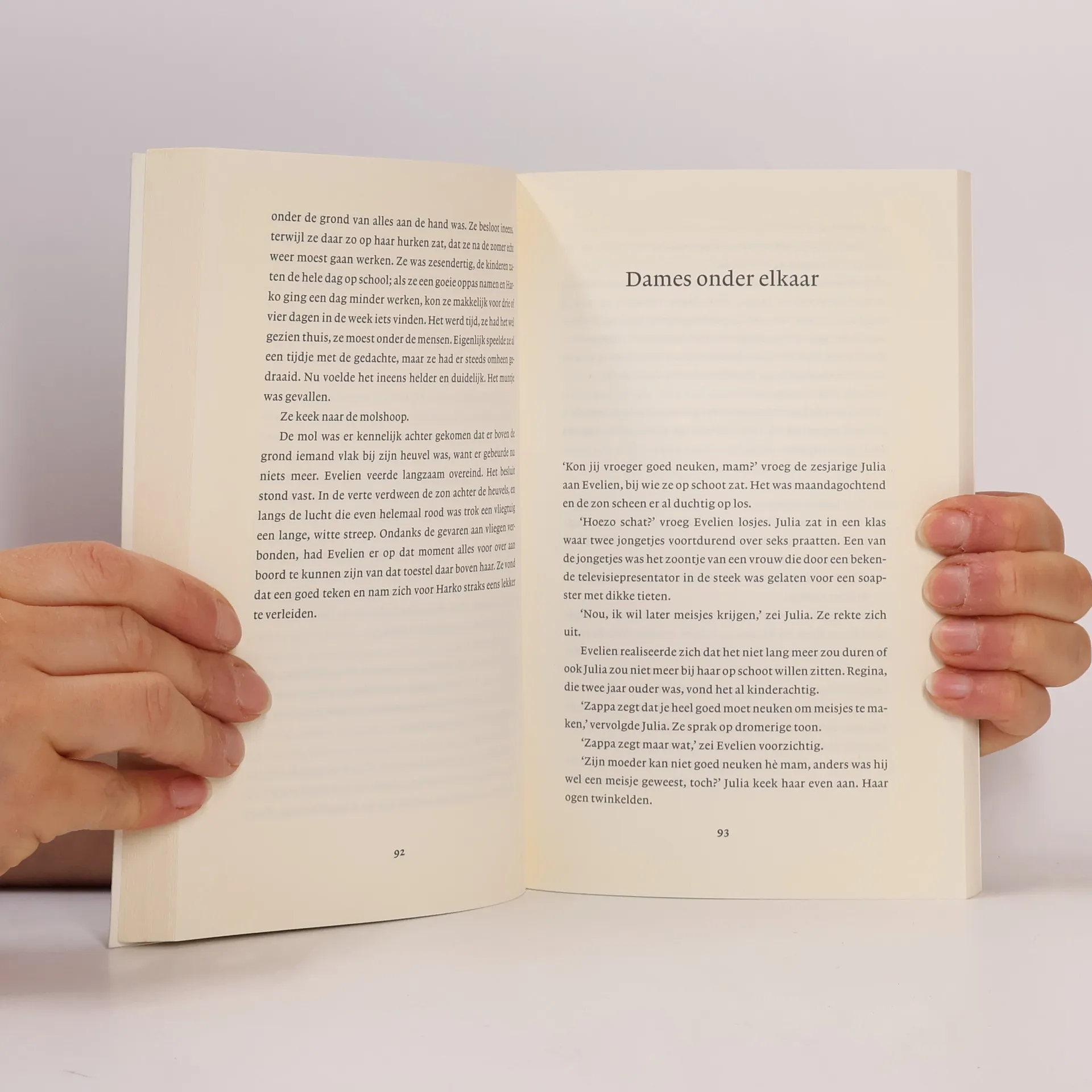Evelien is een roman over een vrouw van nu, opgetrokken uit ruim vijftig korte episodes. Het is een moderne zedenschets met satirische trekken: ontroerend en herkenbaar.