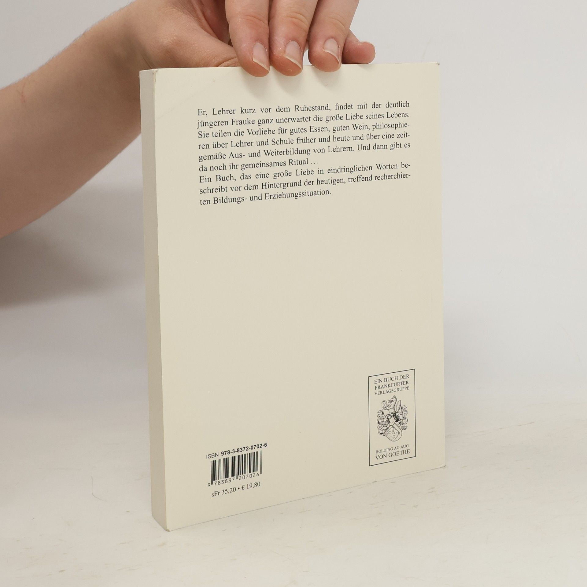 Er, Lehrer kurz vor dem Ruhestand, findet mit der deutlich juengeren Frauke ganz unerwartet die grosse Liebe seines Lebens. Sie teilen die Vorliebe fuer gutes Essen, guten Wein, philosophieren ueber Lehrer und Schule frueher und heute und ueber eine zeitgemaesse Aus- und Weiterbildung von Lehrern. Und dann gibt es da noch ihr gemeinsames Ritual … Ein Buch, das eine grosse Liebe in eindringlichen Worten beschreibt vor dem Hintergrund der heutigen, treffend recherchierten Bildungs- und Erziehungssituation.