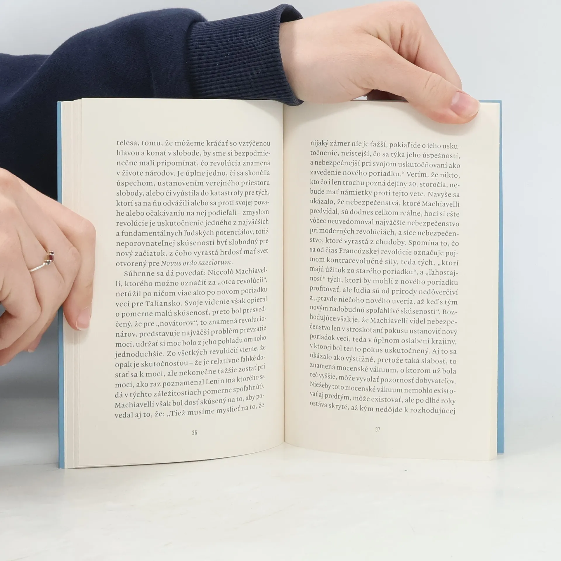 Čo je to sloboda a čo pre nás znamená? Spočíva len v absencii strachu a obmedzení, alebo znamená aj účasť na spoločenských procesoch, vlastný politický hlas, aby nás ostatní počuli, uznali a napokon si na nás spomenuli? Táto esej, ktorá vyšla v Spojených štátoch v šesťdesiatych rokoch, odráža prísnosť a silu politického myslenia Hannah Arendtovej a precízne zhŕňa jej úvahy o slobode, ktoré sú veľmi hlboké a dokážu sa spojiť s výzvami a nebezpečenstvami našej doby. Arendtová sleduje historický vývoj pojmu sloboda, pričom berie do úvahy najmä revolúcie vo Francúzsku a v Amerike. Zatiaľ čo jedna sa skončila katastrofou, ale stala sa zlomovým bodom v dejinách, druhá zaznamenala triumfálny úspech, a predsa zostala lokálnou záležitosťou. Prehodnotenie myšlienky revolúcie sa dnes stalo nevyhnutnosťou a toto opätovné stretnutie s Hannah Arendtovou predstavuje potrebný impulz pre nové generácie.