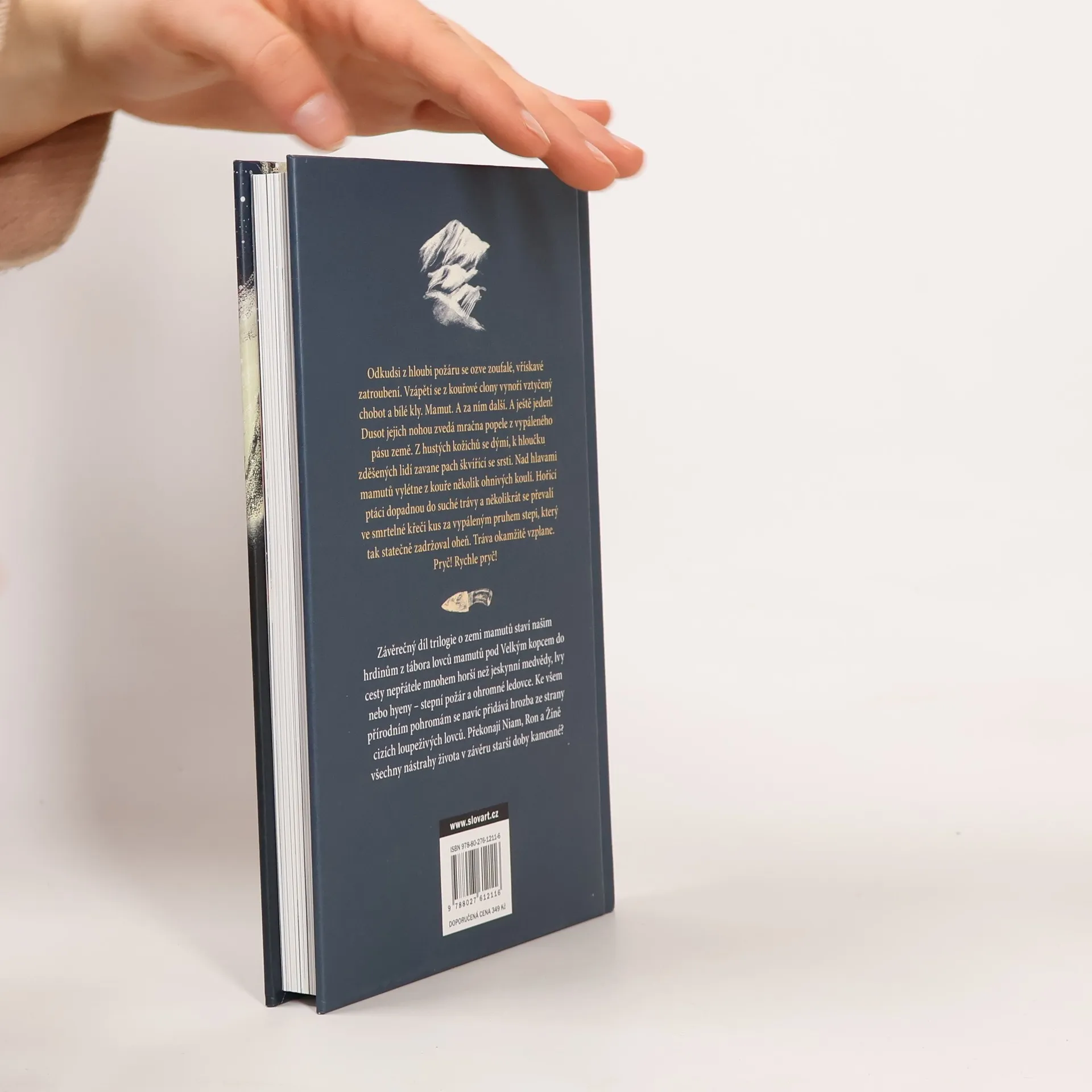 Závěrečný díl trilogie o zemi mamutů staví našim hrdinům do cesty nepřátele mnohem horší než jeskynní medvědy, lvy nebo hyeny. Nebezpečí, kterému čelí chlapec Niam, jeho sestra Žíně, žákyně moudrého šamana, odvážný Ron, ochočený vlk Bratříček a další obyvatelé tábora lovců mamutů pod Velkým kopcem sice nemá ostré zuby ani drápy, přesto je hrozivější. Oheň a led. Zemi mamutů zachvátí obří stepní požár a současně ji svírají nezadržitelné masy ledu, které v podobě ledovců přináší blížící se vrchol doby ledové. Ke všem přírodním pohromám se navíc přidává hrozba ze strany cizích, loupeživých lovců. Překonají Niam, Ron a Žíně všechny nástrahy života v závěru starší doby kamenné? Spisovatel Pavel Radosta se inspiroval nejnovějšími vědeckými poznatky o době lovců mamutů a napsal dobrodružný příběh pro všechny zájemce o toto období. Knihu doprovázejí působivé ilustrace Kateřiny Coufalové.
