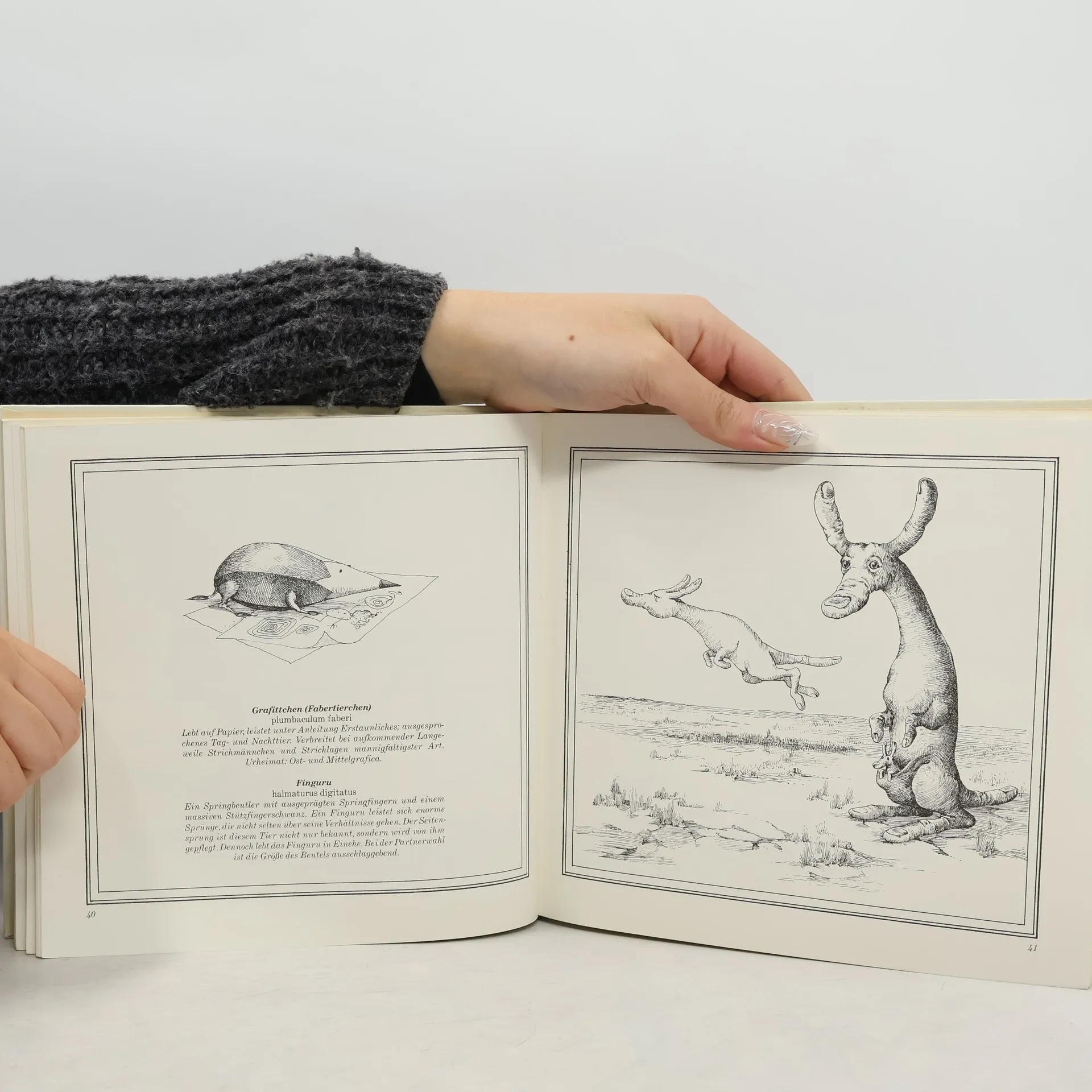 Dem Karikaturisten, dem Archäologen aus Grafittanien, ist es gelungen, Tiere und Pflanzen in ihrer natürlichen Umgebung aufzuspüren, von denen seit langem nur mehr die Namen bekannt waren. Alle werden sie sorgfältig beschrieben, ihre Lebensgewohnheiten werden skizziert, und ihre Domestizierbarkeit wird in Erwägung gezogen.