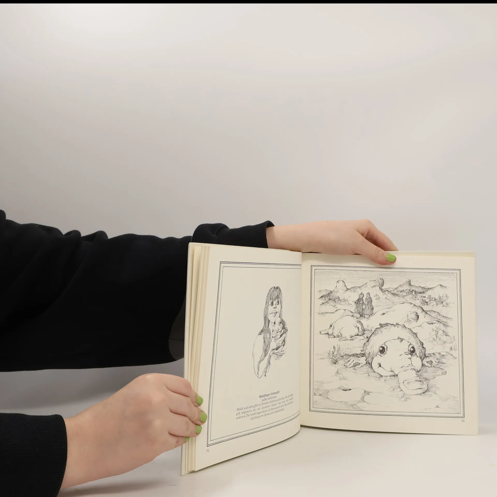 Dem Karikaturisten, dem Archäologen aus Grafittanien, ist es gelungen, Tiere und Pflanzen in ihrer natürlichen Umgebung aufzuspüren, von denen seit langem nur mehr die Namen bekannt waren. Alle werden sie sorgfältig beschrieben, ihre Lebensgewohnheiten werden skizziert, und ihre Domestizierbarkeit wird in Erwägung gezogen.