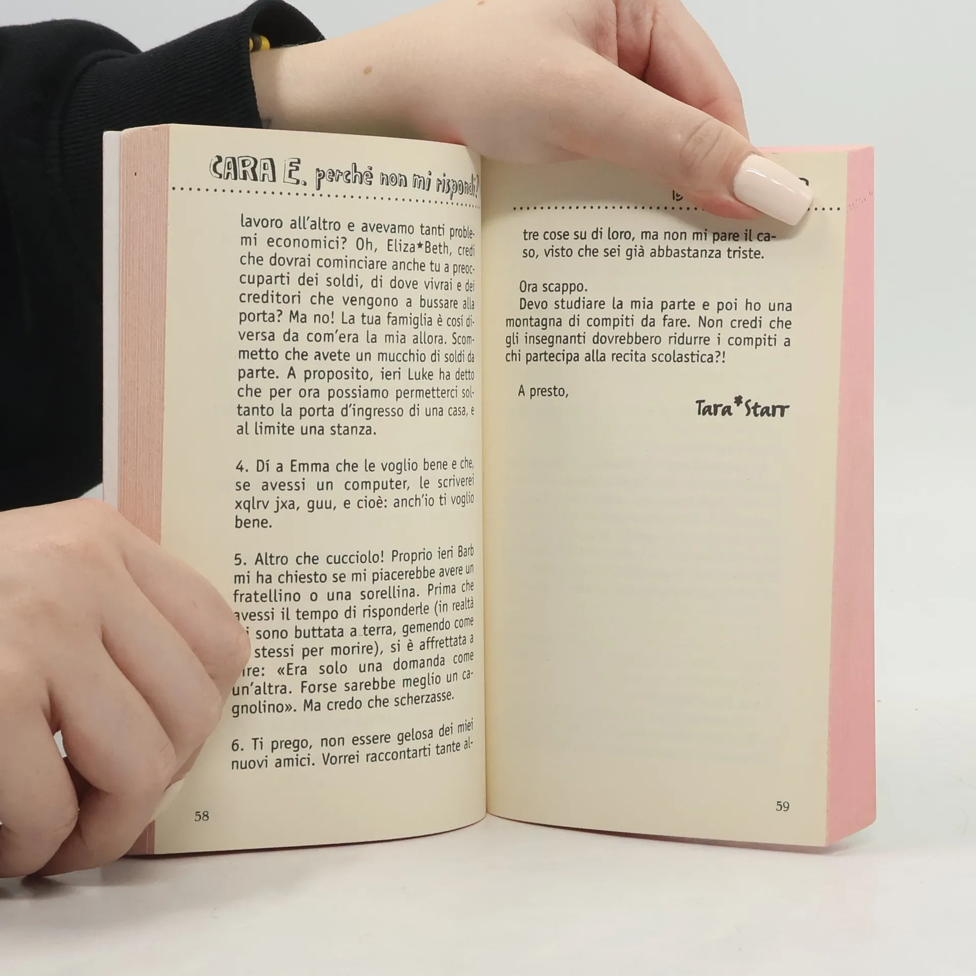 Maglietta nera con su scritto SALVATE LE BALENE, Doc Martens con lacci fluorescenti, la tendenza a parlare prima di riflettere: questa è Tara Starr, ragazzina esplosiva con due genitori giovanissimi e un tantino irresponsabili. Gonna scozzese, mocassini, orecchini di perle e una timidezza tale da farla sembrare un po' snob: ecco Elizabeth, ragazza modello che vive in una grande villa piena di servitù. Non potrebbero essere più diverse, eppure si vogliono bene... Tanto bene che, quando Tara è costretta a trasferirsi, le due amiche cominciano un intenso scambio di lettere per raccontarsi le novità, i cambiamenti (e nella loro vita ce ne sono un bel po'), le speranze e i problemi... Il guaio, però, è che si può litigare anche per lettera!