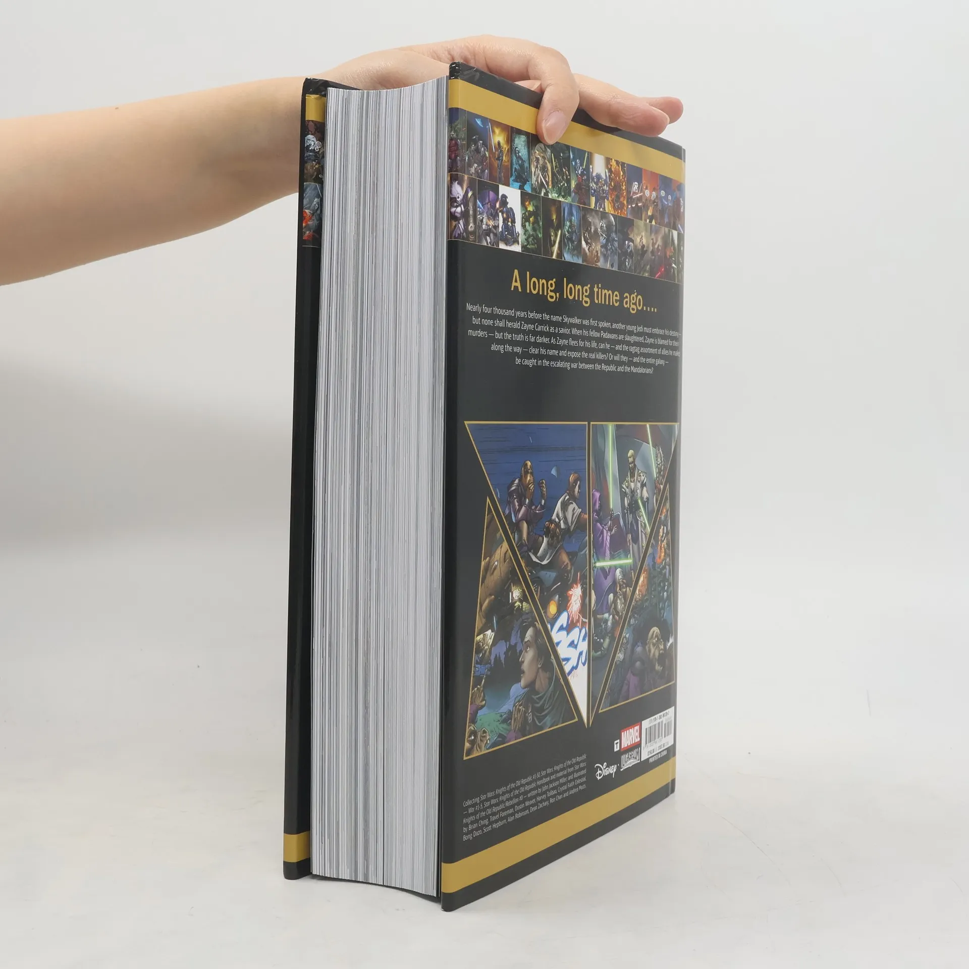 A long, long time ago, the Star Wars galaxy was a very different place. Welcome to the Old Republic! When young Jedi Zayne Carrick is framed for murder by his own masters, he goes on the run with three unlikely allies: con artist Marn Hierogryph, fugitive scientist Camper and bodyguard Jarael. But can they survive long enough to clear Carrick's name, uncover a conspiracy and maybe gain a bit of profit along the way? Strap in for an adventure that spans the galaxy as this ragtag group of heroes face corrupted Jedi, deadly Mandalorians, the power of the Sith and more! Collecting STAR WARS: KNIGHTS OF THE OLD REPUBLIC #1-50, STAR WARS: KNIGHTS OF THE OLD REPUBLIC - WAR #1-5, STAR WARS: KNIGHTS OF THE OLD REPUBLIC HANDBOOK and material from STAR WARS: KNIGHTS OF THE OLD REPUBLIC/REBELLION #0. Rated T