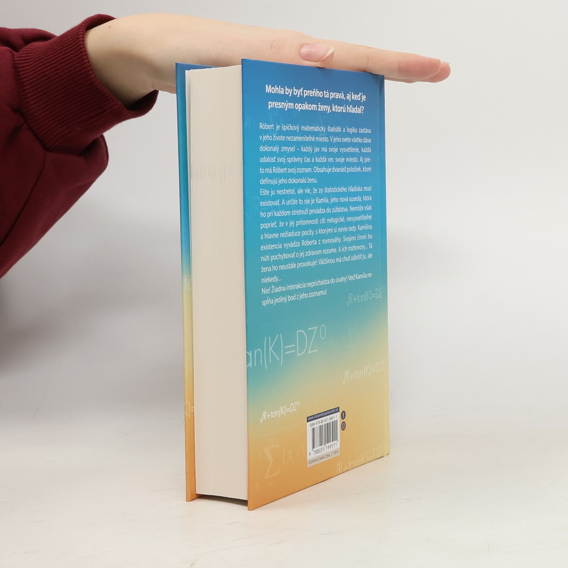 Mohla by byť preňho tá pravá, aj keď je presným opakom ženy, ktorú hľadal? Róbert je špičkový štatistik a logika zastáva v jeho živote nezameniteľné miesto. V jeho svete všetko dáva dokonalý zmysel – každý jav má svoje vysvetlenie, každá udalosť svoj správny čas a každá vec svoje miesto. Aj preto má Róbert svoj zoznam. Obsahuje dvanásť položiek, ktoré definujú jeho dokonalú ženu. Ešte ju nestretol, ale vie, že zo štatistického hľadiska musí existovať. A určite to nie je Kamila, jeho nová suseda, ktorá ho pri každom stretnutí privádza do zúfalstva. Nemôže však poprieť, že v jej prítomnosti cíti nelogické, nevysvetliteľné a hlavne nežiadúce pocity, s ktorými si nevie rady. Kamilina existencia vyvádza Róberta z rovnováhy. Svojimi činmi ho núti pochybovať o jej zdravom rozume. A jej vyjadrovanie... tá žena ho neustále provokuje! Väčšinou má chuť uškrtiť ju, ale niekedy... Nie! Žiadna interakcia neprichádza do úvahy! Veď Kamila nespĺňa jediný bod z jeho zoznamu!
