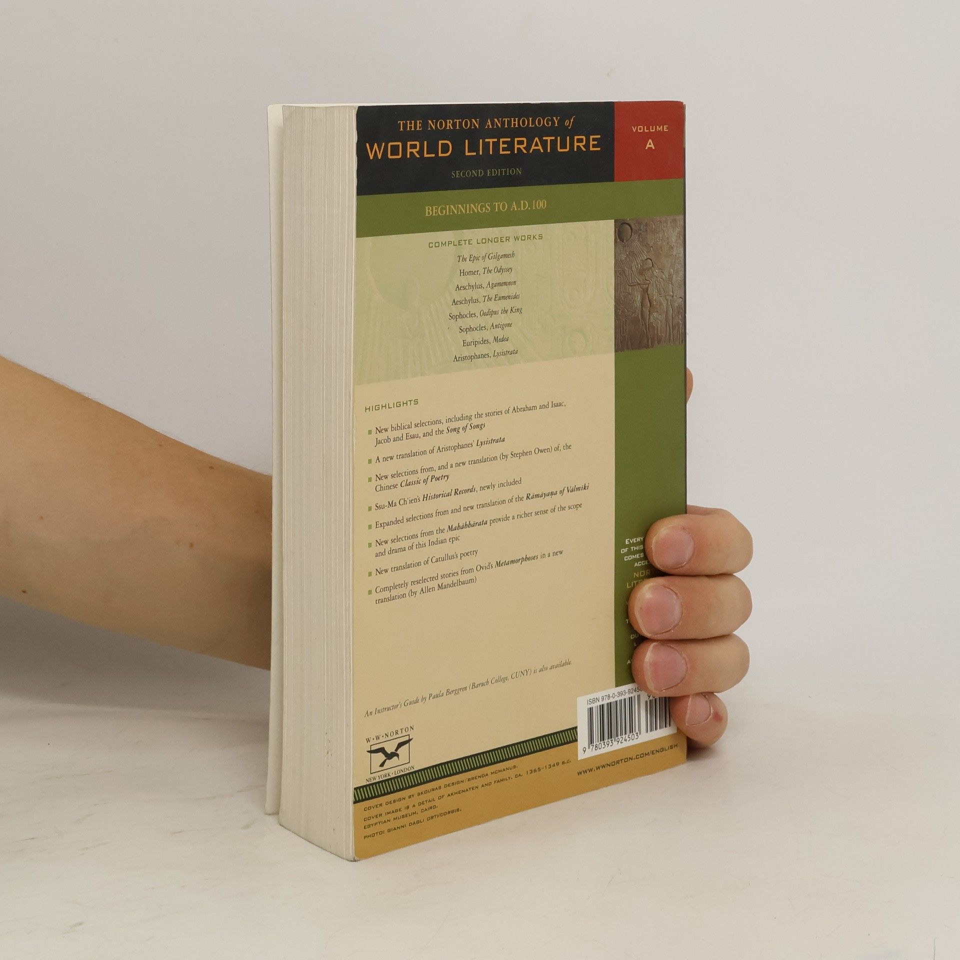 Leading the field once again, Norton is proud to publish the anthology for the new century, The Norton Anthology of World Literature, Second Edition. Now published in six paperback volumes (packaged in two attractive slipcases), the new anthology boasts slimmer volumes, thicker paper, a bolder typeface, and dozens of newly included or newly translated works from around the world. The Norton Anthology of World Literature represents continuity as well as change. Like its predecessor, the anthology is a compact library of world literature, offering an astounding forty-three complete longer works, more than fifty prose works, over one hundred lyric poems, and twenty-three plays. More portable, more suitable for period courses, more pleasant to read, and more attuned to current teaching and research trends, The Norton Anthology of World Literature remains the most authoritative, comprehensive, and teachable anthology for the world literature survey.