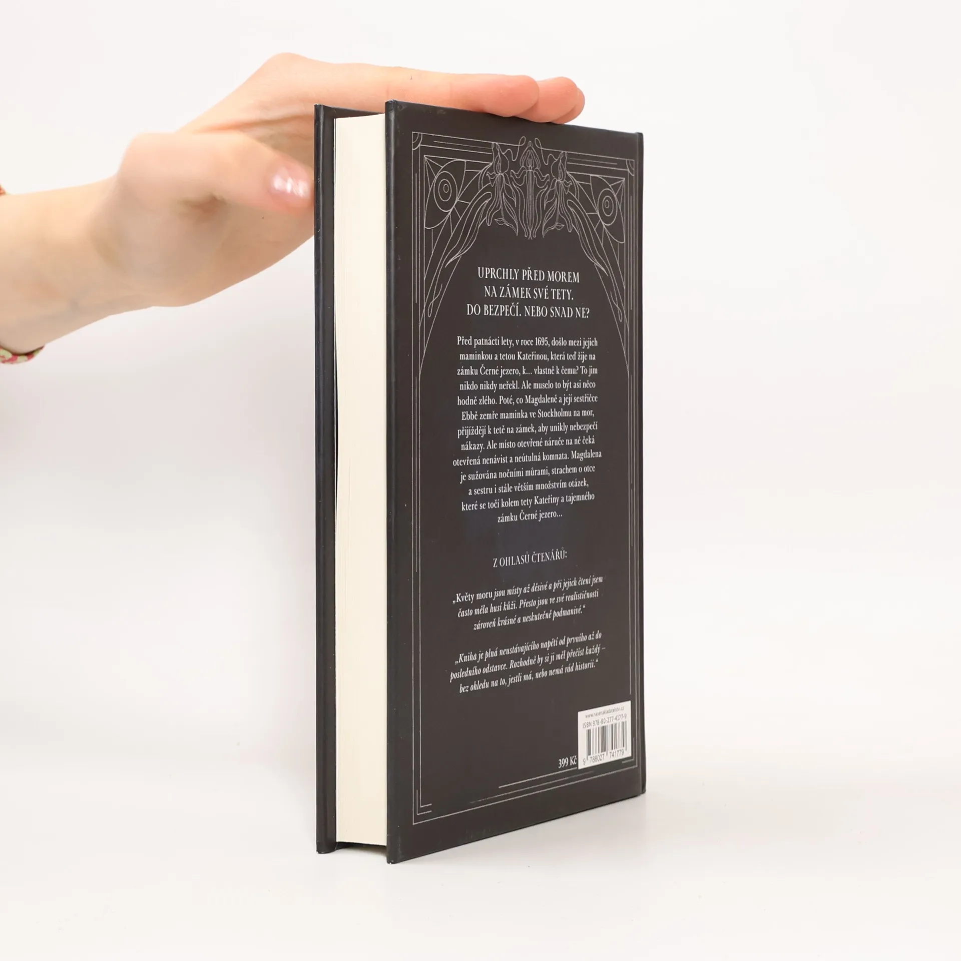 Budu vám vyprávět, jak to tenkrát, na podzim onoho roku, bylo. Začnu tím, že vám prozradím to největší tajemství ze všech. Přiznám se k tomu nejhoršímu ze všeho: Jediné, co jsem si přála, bylo, aby přestala křičet. Je podzim roku 1710 a mor roztahuje svá černá křídla nad Stockholmem. Magdalena a její mladší sestra jsou po smrti své matky na tuto obávanou nemoc nucené z města odejít. Odjíždí na zámek Černé jezero k tetě, kterou nikdy neviděly. Zámek je sice krásný, ale jeho pokoje zejí prázdnotou a také služebných je pomálu. Ale to je jen začátek, protože další záhady na sebe nedají dlouho čekat. Proč má Magdalena pocit, že ji teta Kateřina nenávidí? Kdo je ten děsivý kněz, který pravidelně jednou týdně dochází na zámek? A proč není Magdaleně dovoleno se seznámit, nebo dokonce jen mluvit, o Kateřininu nevlastním synovi? Kniha Květy moru je krásný a strašidelný příběh o zakázané lásce a temných tajemstvích z minulosti.