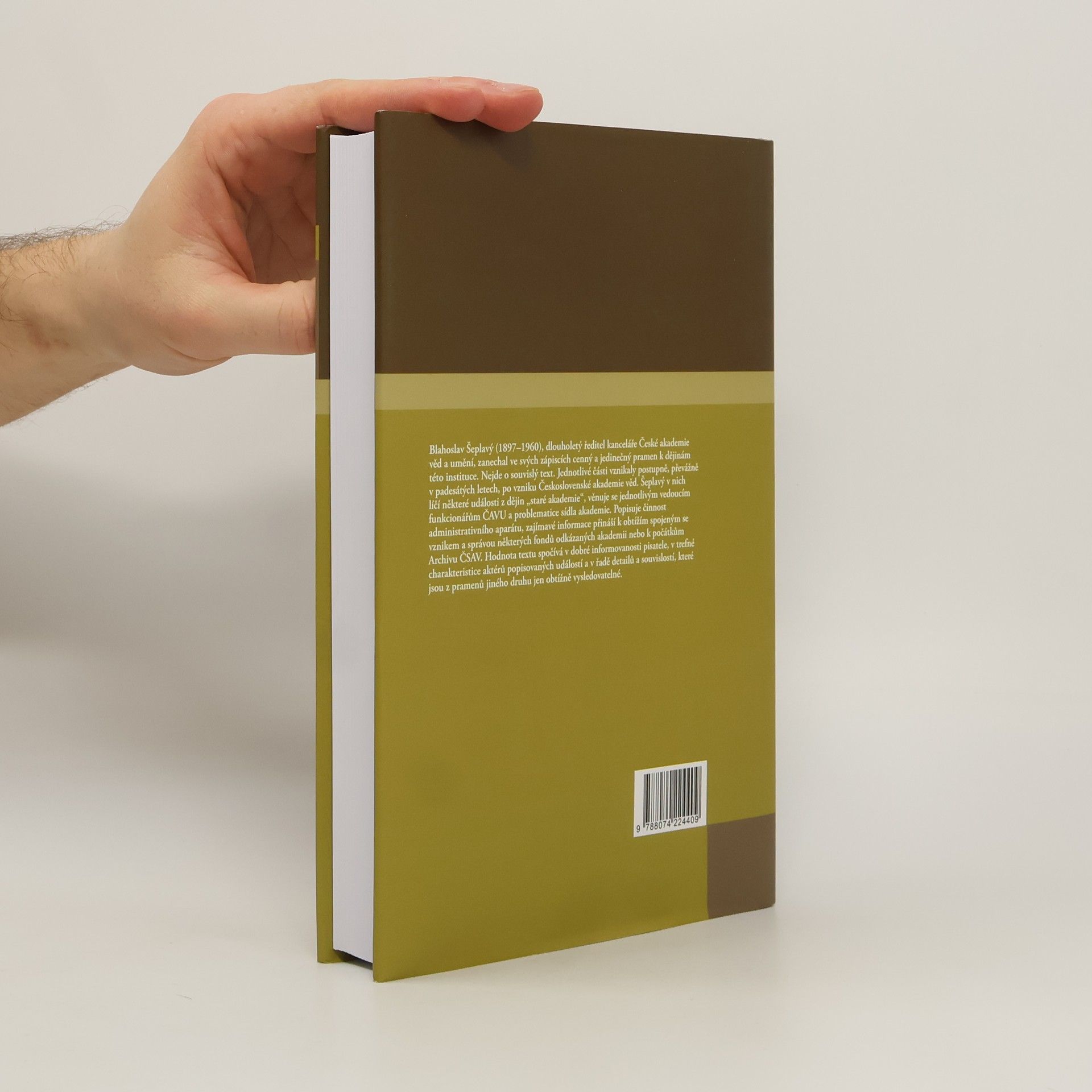 Blahoslav Šeplavý (1897–1960), dlouholetý ředitel kanceláře České akademie věd a umění, zanechal ve svých zápiscích cenný a jedinečný pramen k dějinám této instituce. Nejde o souvislý text. Jednotlivé části vznikaly postupně, převážně v padesátých letech, po vzniku Československé akademie věd. Šeplavý v nich líčí některé události z dějin „staré akademie“, věnuje se jednotlivým vedoucím funkcionářům ČAVU a problematice sídla akademie. Popisuje činnost administrativního aparátu, zajímavé informace přináší k obtížím spojeným se vznikem a správou některých fondů odkázaných akademii nebo k počátkům Archivu ČSAV. Hodnota textu spočívá v dobré informovanosti pisatele, v trefné charakteristice aktérů popisovaných událostí a v řadě detailů a souvislostí, které jsou z pramenů jiného druhu jen obtížně vysledovatelné.