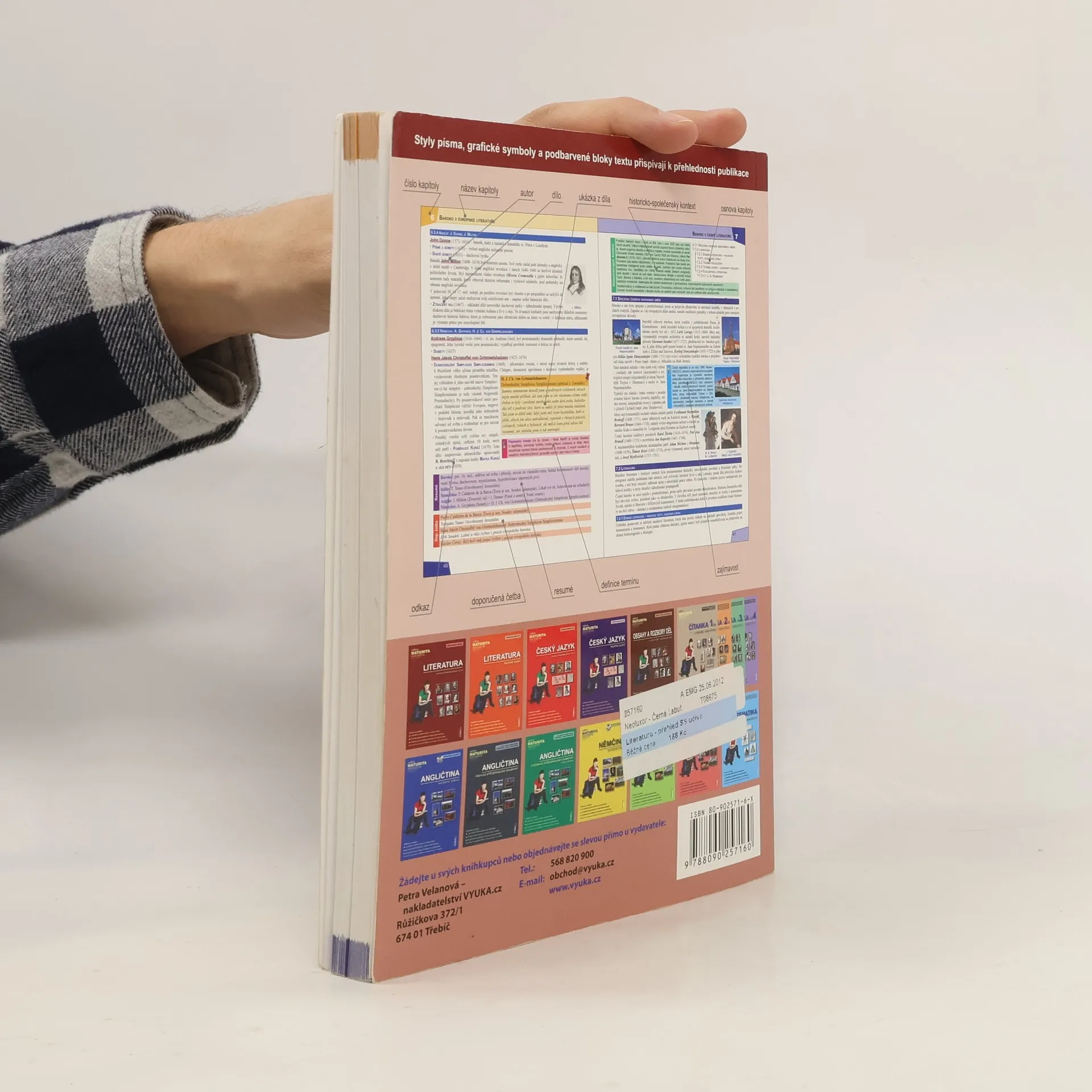 Učebnice poslouží nejen při pravidelné výuce literatury, ale následně i při přípravě k maturitě a přijímacím zkouškám na vysokou školu. V úvodu kapitoly je vždy zařazen tzv. historicko-společenský kontext. V něm jsou představeny základní atributy daného literárního období, které bylo vždy spjato s dobovými společenskými, kulturními a politickými událostmi. Text doprovází množství obrázků, které mají studentům ujasnit pohled na probíranou problematiku a ukázat ji na příkladech.