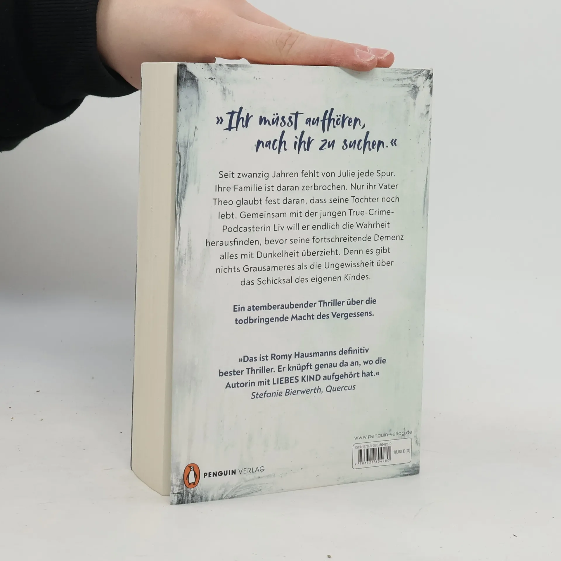 Ein gnadenloser Thriller über das Verschwinden eines Kindes. Die Angst vor dem Erinnern. Über zerstörte Leben und die Abgründe von „True Crime“. Endlich: Der neue Thriller von Romy Hausmann»Der Teufel hatte gewonnen. Seine Macht war grenzenlos. Meinen Körper würde er am Leben halten, gerade so. Wie eine Trophäe. Doch als ich zu mir kam, fand ich mich plötzlich wieder am Ufer des Sees …«Seit dem 7. September 2003 ist Julie Novak verschwunden. Die Familie ist daran zerbrochen. Nur ihr Vater Theo hört nicht auf, nach ihr zu suchen. Als sich Julies Verschwinden zum zwanzigsten Mal jährt, nimmt die Podcasterin Liv Kontakt zu Theo auf. Sie sei auf eine neue Spur gestoßen. Doch wenn er die Wahrheit erfahren will, muss er sich beeilen, bevor seine fortschreitende Demenz alles mit Dunkelheit überzieht. Wer zum Teufel hat ihm seine Tochter genommen? Warum hat Julies Ex-Freund Daniel das Schlafzimmer seiner verstorbenen Mutter so sorgfältig verschlossen? Und gibt es etwas Grausameres als die Ungewissheit über das Schicksal des eigenen Kindes?»Das ist Romy Hausmanns definitiv bester Thriller. Er knüpft genau da an, wo die Autorin mit ›Liebes Kind‹ aufgehört hat. Herzlichen Glückwunsch zu diesem sensationellen Roman.« UK-Verlegerin Stephanie Bierwerth (Quercus) über »Himmelerdenblau«Internationaler Emmy-Award 2024 für die Netflix-Verfilmung von »Liebes Kind«