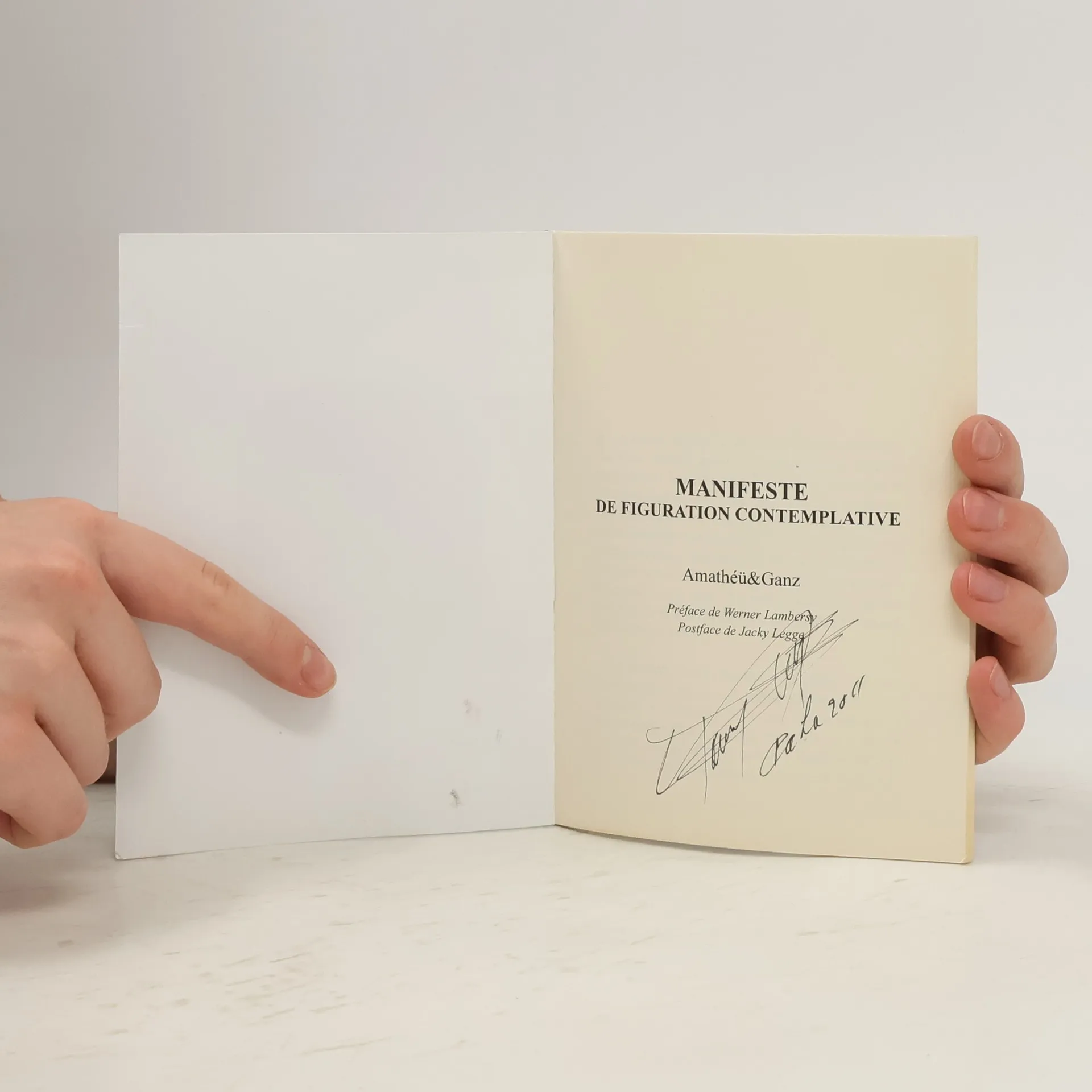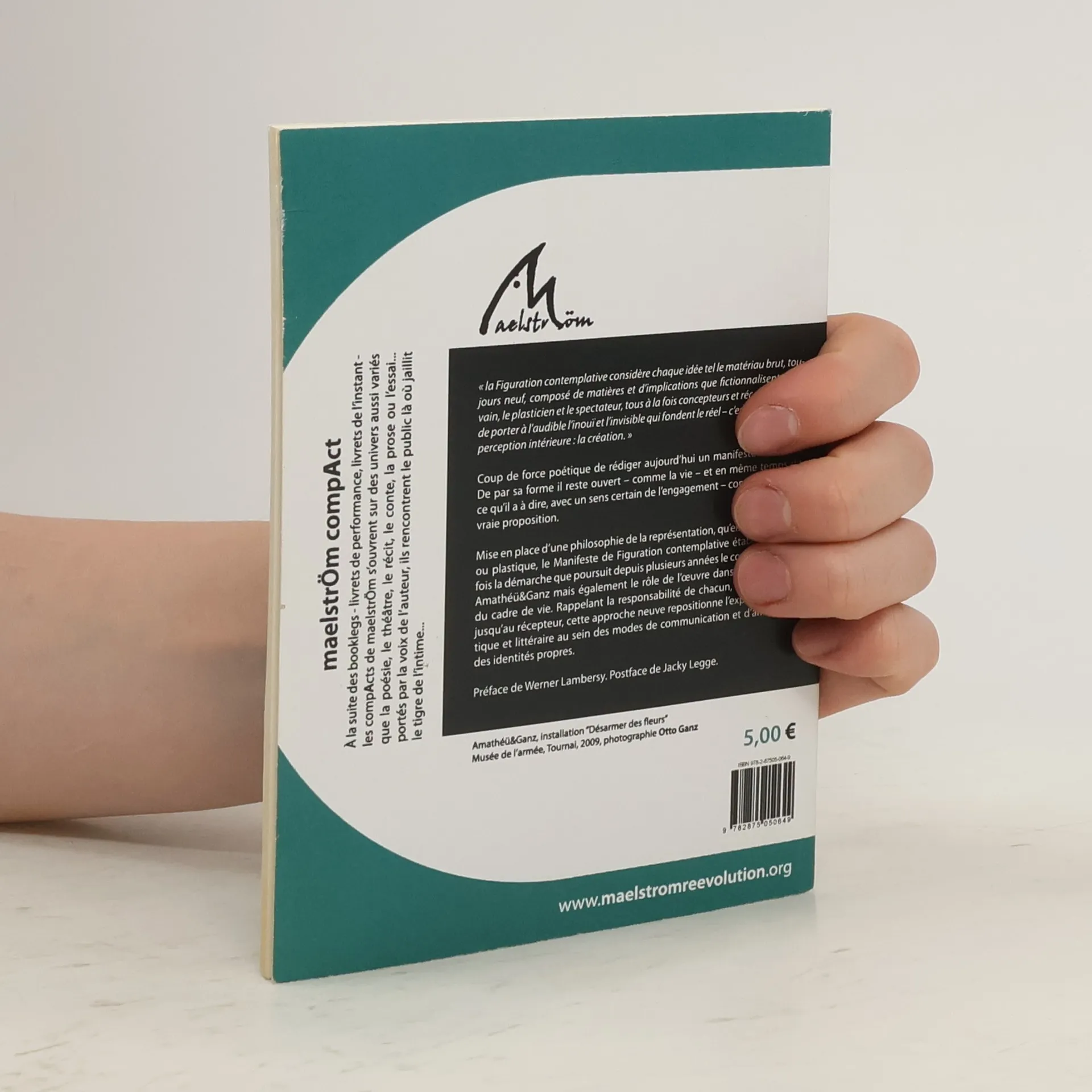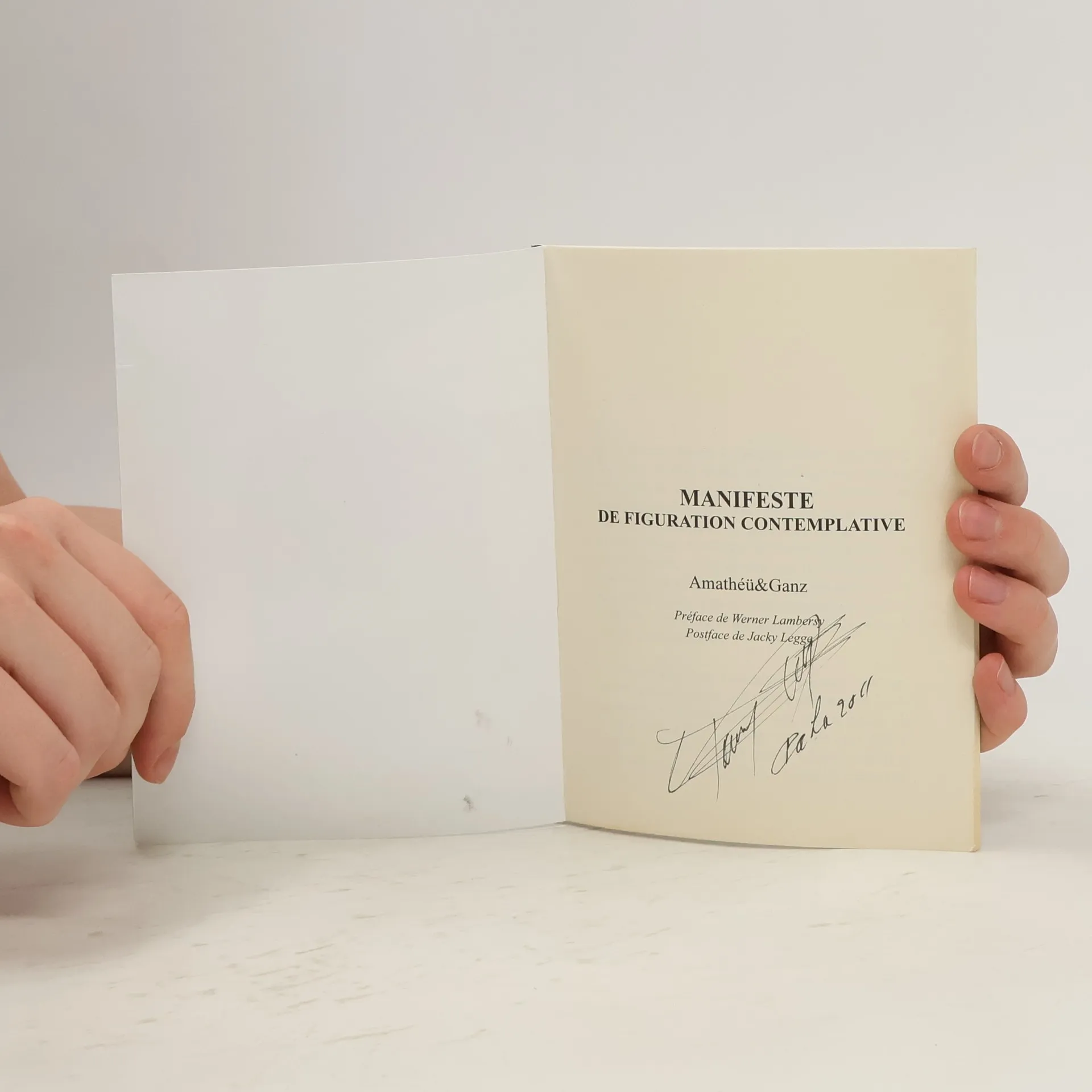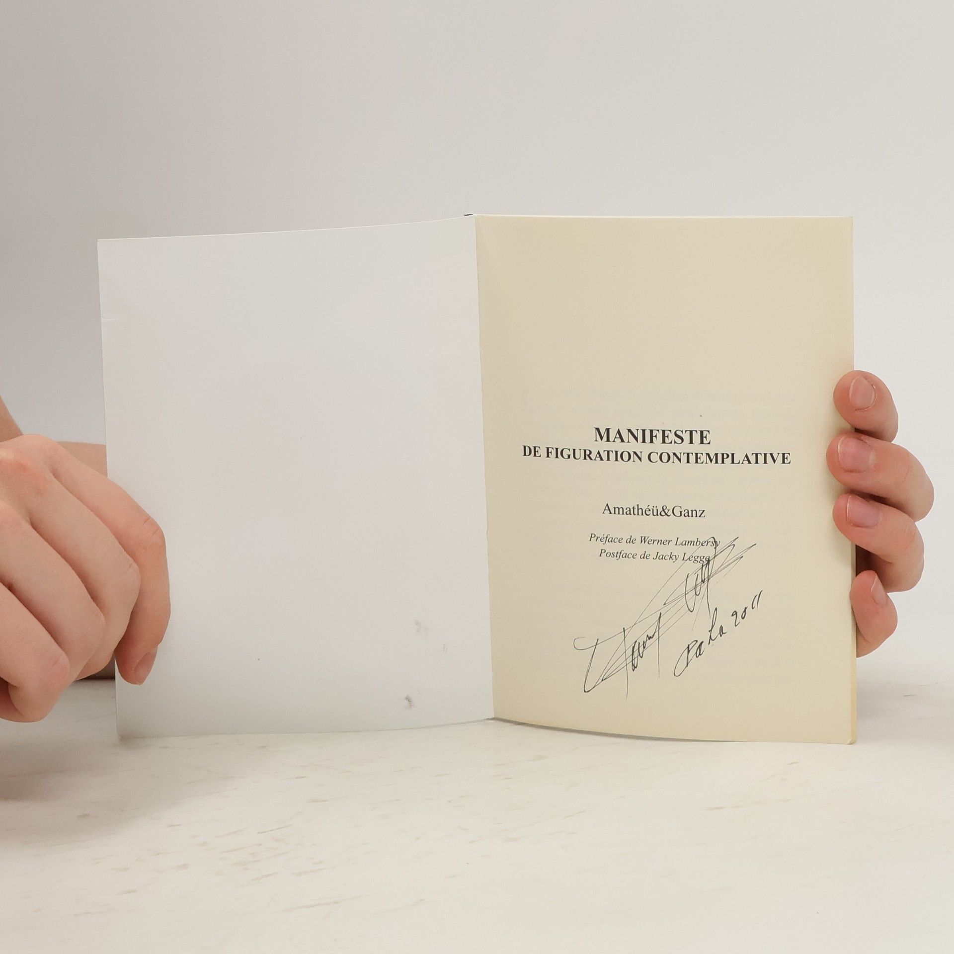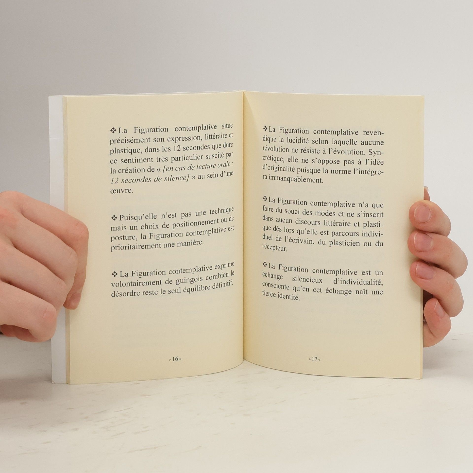 "La Figuration contemplative considère chaque idée telle le matériau brut, toujours neuf, composé de matières et d'implications que fictionnalisent l'écrivain, le plasticien et le spectateur, tous à la fois concepteurs et récepteurs, afin de porter à l'audible l'inouï et l'invisible qui fondent le réel - c'est-à-dire l'ultime perception intérieure : la création". Coup de force poétique de rédiger aujourd'hui un manifeste artistique. De par sa forme il reste ouvert - comme la vie - et en même temps dit ce qu'il a à dire, avec un sens certain de l'engagement - comme l'art. Une vraie proposition. Mise en place d'une philosophie de la représentation, qu'elle soit littéraire ou plastique, le Manifeste de Figuration contemplative établit tout à la fois la démarche que poursuit depuis plusieurs années le couple d'artistes Amathéü et Ganz mais également le rôle de l'oeuvre dans la constitution du cadre de vie. Rappelant la responsabilité de chacun, depuis l'artiste jusqu'au récepteur, cette approche neuve repositionne l'expression artistique et littéraire au sein des modes de communication et d'affirmation des identités propres.