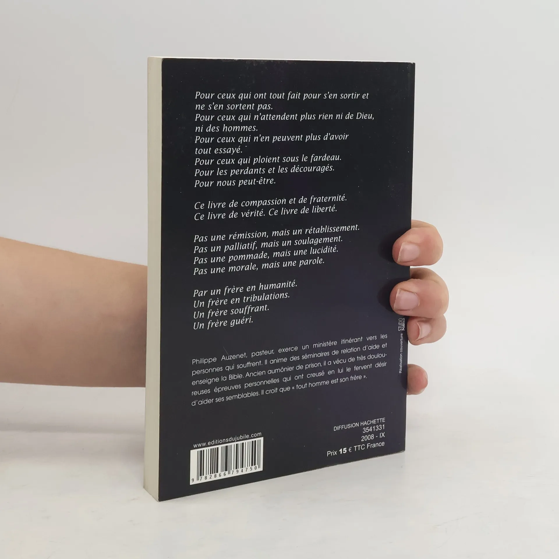 Pour ceux qui ont tout fait pour s'en sortir et ne s'en sortent pas. Pour ceux qui n'attendent plus rien ni de Dieu, ni des hommes. Pour ceux qui n'en peuvent plus d'avoir tout essayé. Pour ceux qui ploient sous le fardeau. Pour les perdants et les découragés. Pour nous peut-être. Ce livre de compassion et de fraternité. Ce livre de vérité. Ce livre de liberté. Pas une rémission, mais un rétablissement. Pas un palliatif, mais un soulagement. Pas une pommade, mais une lucidité. Pas une morale, mais une parole. Par un frère en humanité. Un frère en tribulations. Un frère souffrant. Un frère guéri.