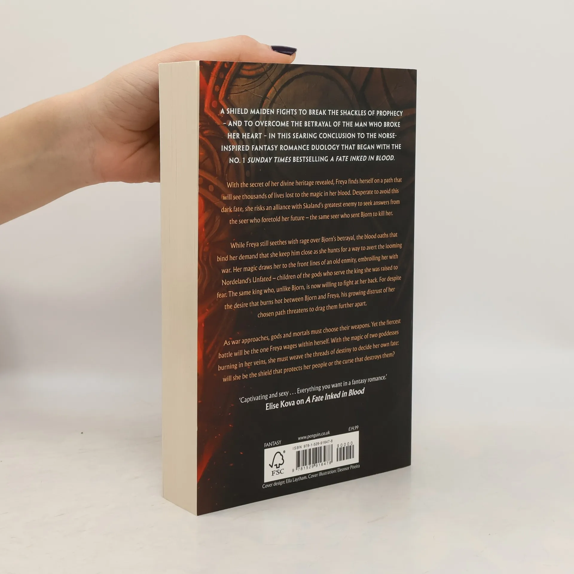 With the secret of her divine heritage revealed, Freya finds herself on a path that could see thousands of lives lost to the magic in her blood. Desperate to avoid this dark fate, she risks an alliance with Skaland's greatest enemy to seek answers from the seer who foretold her future - the same seer who sent Bjorn to kill her.While Freya still seethes with rage over Bjorn's betrayal, the blood oaths that bind her demand that she keep him close as she hunts for a way to avert the looming war. Her magic draws her to the front lines of an old enmity, embroiling her with Nordeland's Unfated - children of the gods who serve the king she was raised to fear. The same king who, unlike Bjorn, is now willing to fight at her back. For despite the desire that burns hot between Bjorn and Freya, his growing distrust of her chosen path threatens to drag them further apart.As war approaches, gods and mortals must choose their weapons. Yet the fiercest battle will be the one Freya wages within herself. With the magic of two goddesses burning in her veins, she must weave the threads of destiny to decide her own fate:Will she be the shield that protects her people or the curse that destroys them?