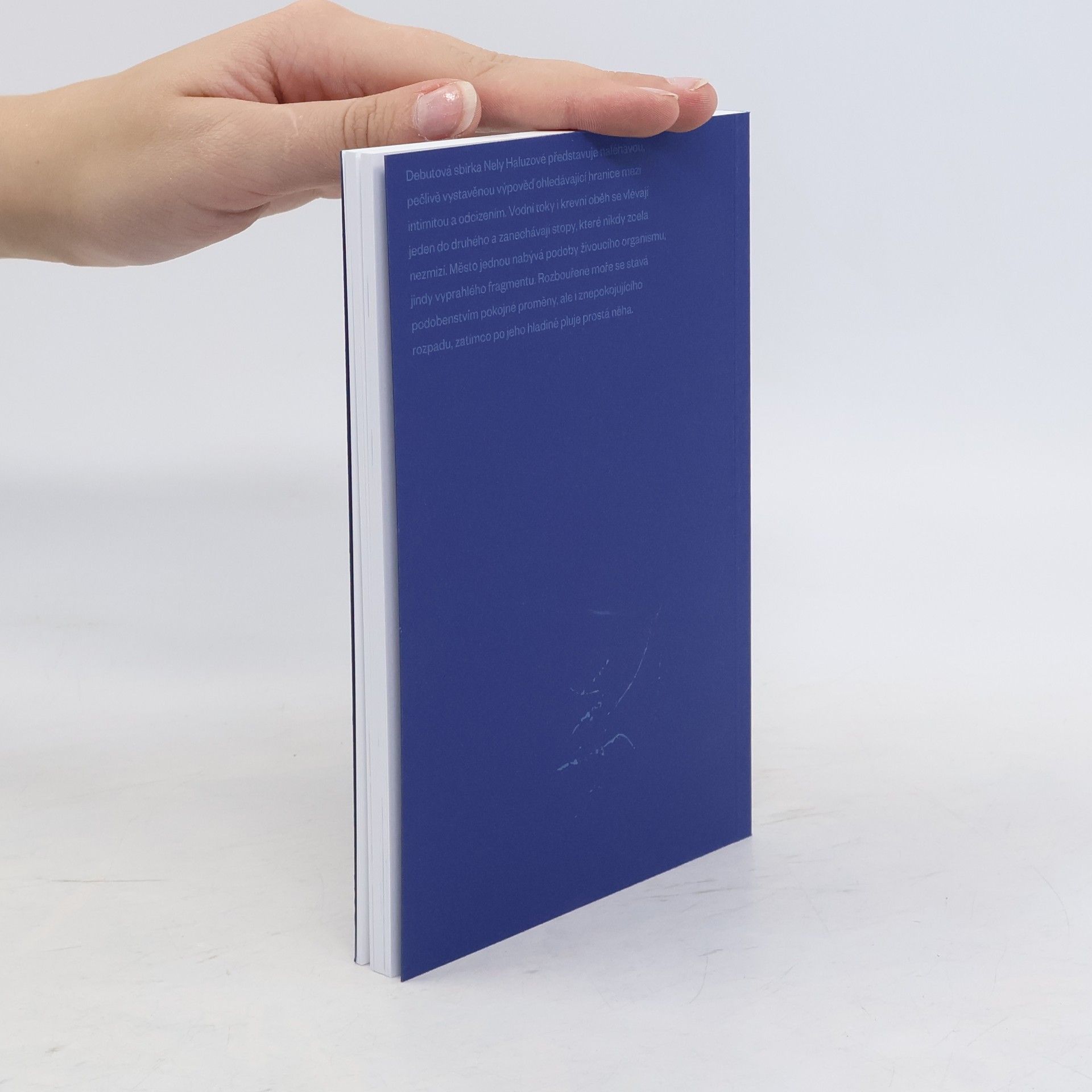 Debutová sbírka Nely Haluzové představuje naléhavou, pečlivě vystavěnou výpověď ohledávající hranice mezi intimitou a odcizením. Vodní toky i krevní oběh se vlévají jeden do druhého, zanechávají stopy, které nikdy zcela nezmizí. Město se stává živoucím organismem i vyprahlým fragmentem. Na hladině divokého a podmanivého oceánu, který je podobenstvím o pokojné proměně i znepokojujícím rozpadu, pluje prostá něha. Křehké vlny bytí se čeří v příboji.