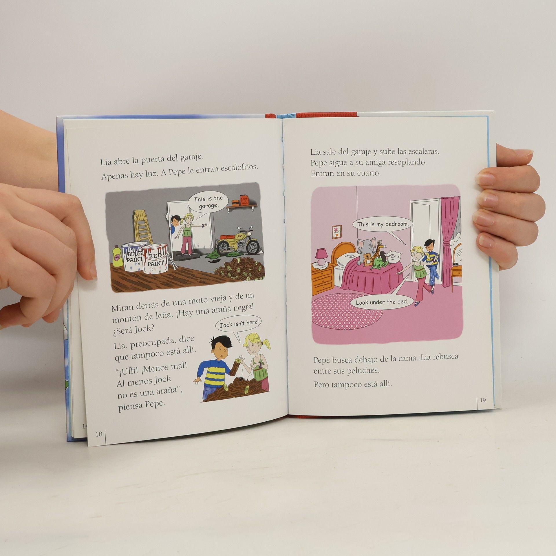 Pepe goes to England to live with his mother’s friend, Mrs. Parker, and her family. Pepe is surprised by many things in this new country—the driver sits on a different side than in Spain and people drive on the left instead of the right. When Pepe arrives at Mrs. Parker’s home, they discover that Jock the dog is lost, and the family immediately begins to look for him. Pepe va a Inglaterra para vivir con la amiga de su madre, la señora Parker, y su familia. Pepe va de sorpresa en sorpresa en este nuevo país—el volante del coche está en el lado contrario del volante en España y los coches circulan por la izquierda en vez de la derecha. Cuando Pepe llega a la casa de la señora Parker, ellos descubren que Jock el perro se ha perdido, y la familia inmediatamente empieza buscarlo.
