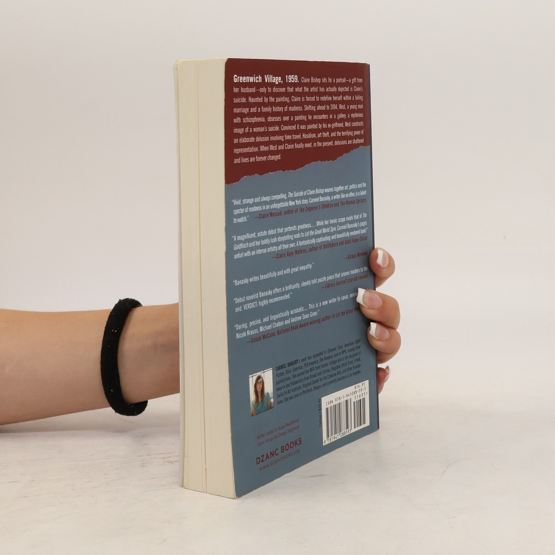 Greenwich Village, 1959. Claire Bishop sits for a portrait — a gift from her husband — only to discover that what the artist has actually depicted is Claire’s suicide. Haunted by the painting, Claire is forced to redefine herself within a failing marriage and a family history of madness. Shifting ahead to 2004, we meet West, a young man with schizophrenia who is obsessed with a painting he encounters in a gallery: a mysterious image of a woman’s suicide. Convinced it was painted by his ex-girlfriend, West constructs an elaborate delusion involving time-travel, Hasidism, art-theft, and the terrifying power of representation. When the two characters finally meet, in the present, delusions are shattered and lives are forever changed. The Suicide of Claire Bishop is a dazzling debut, evocative of Michael Cunningham's The Hours (and Virginia Woolf's classic Mrs. Dalloway), as well as Donna Tartt's bestseller The Goldfinch. With high stakes that reach across American history, Carmiel Banasky effortlessly juggles balls of madness, art theft, and Time itself, holding the reader in a thrall of language and personal consequences. Daring, sexy, emotional, The Suicide of Claire Bishop heralds Banasky as an important new talent.