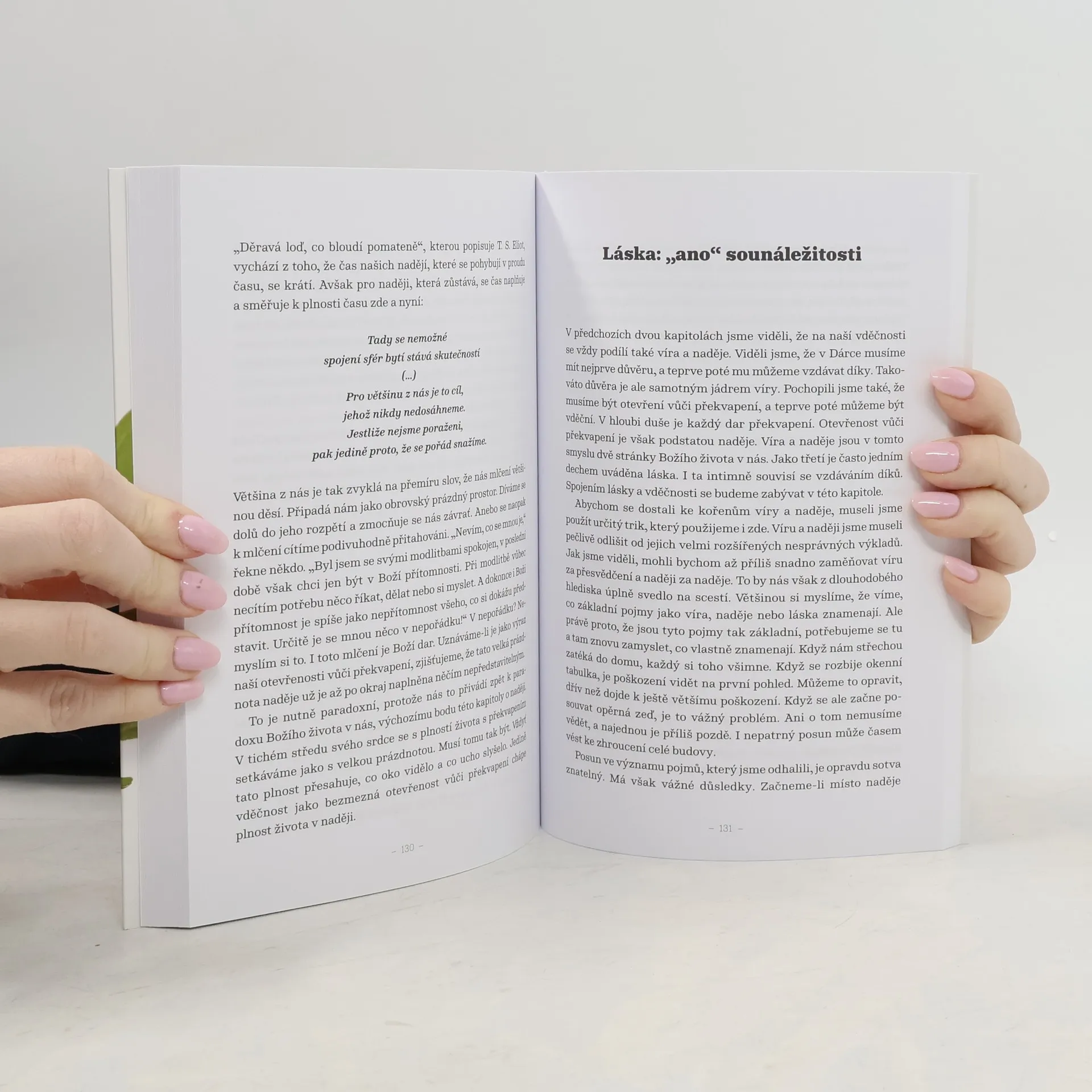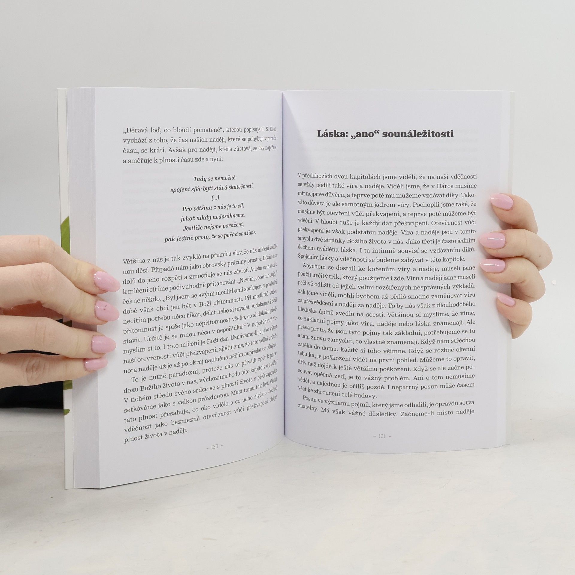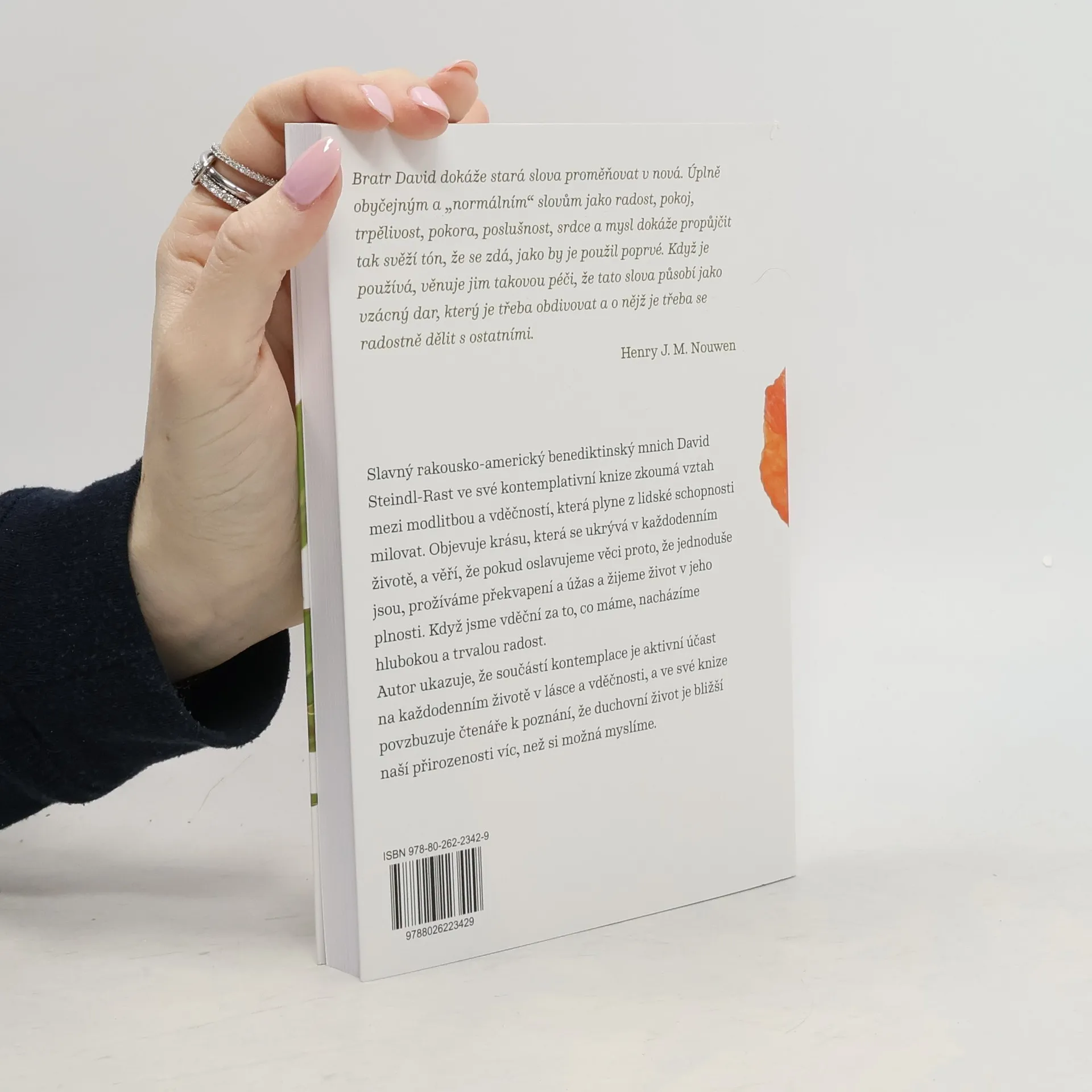 Slavný rakousko-americký benediktinský mnich David Steindl-Rast ve své kontemplativní knize zkoumá vztah mezi modlitbou a vděčností, která plyne z lidské schopnosti milovat. Objevuje krásu, která se ukrývá v každodenním životě. Věří, že pokud oslavujeme věci proto, že prostě jsou, žijeme život je v jeho plnosti. Překvapení je podle něj cestou k tomu, abychom si uvědomovali hodnotu života. Strach znamená podmínku odvahy. Klíčem k životu je rovnováha mezi dáváním a přijímáním, přičemž dávat můžeme tím, že se něčeho vzdáme, že vzdáme díky nebo že odpustíme. Radost není výsledkem toho, že se nám daří, nýbrž naší vděčnosti – pokud jsme vděční za to, co máme, nacházíme hlubokou a trvalou radost. I smysl života podle autora objevujeme skrze vděčnost. Autor, který věří, že součástí kontemplace je aktivní účast na životě v lásce a vděčnosti, ve své knize propojuje duchovní myšlenky s každodenní zkušeností, kterou může získat každý z nás.