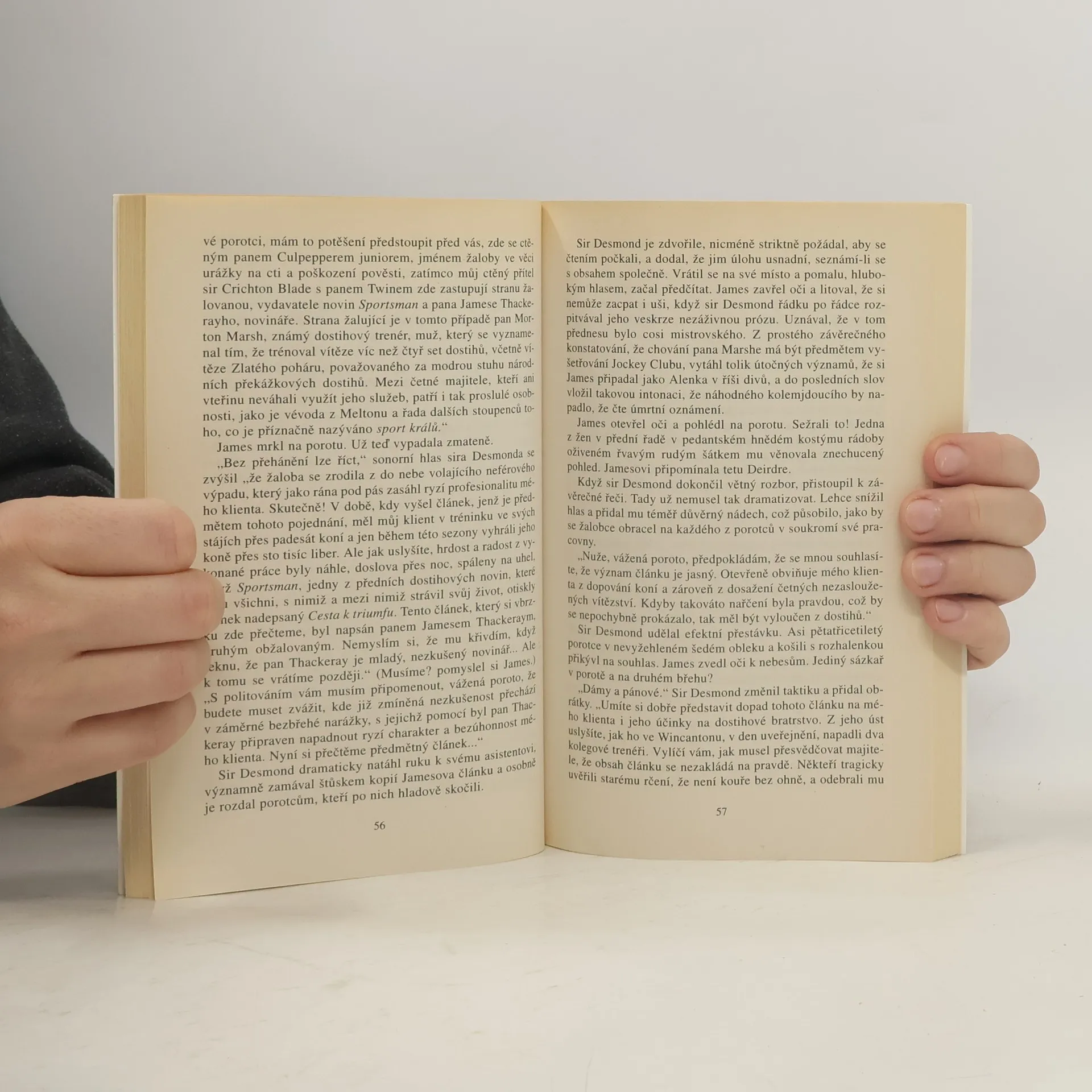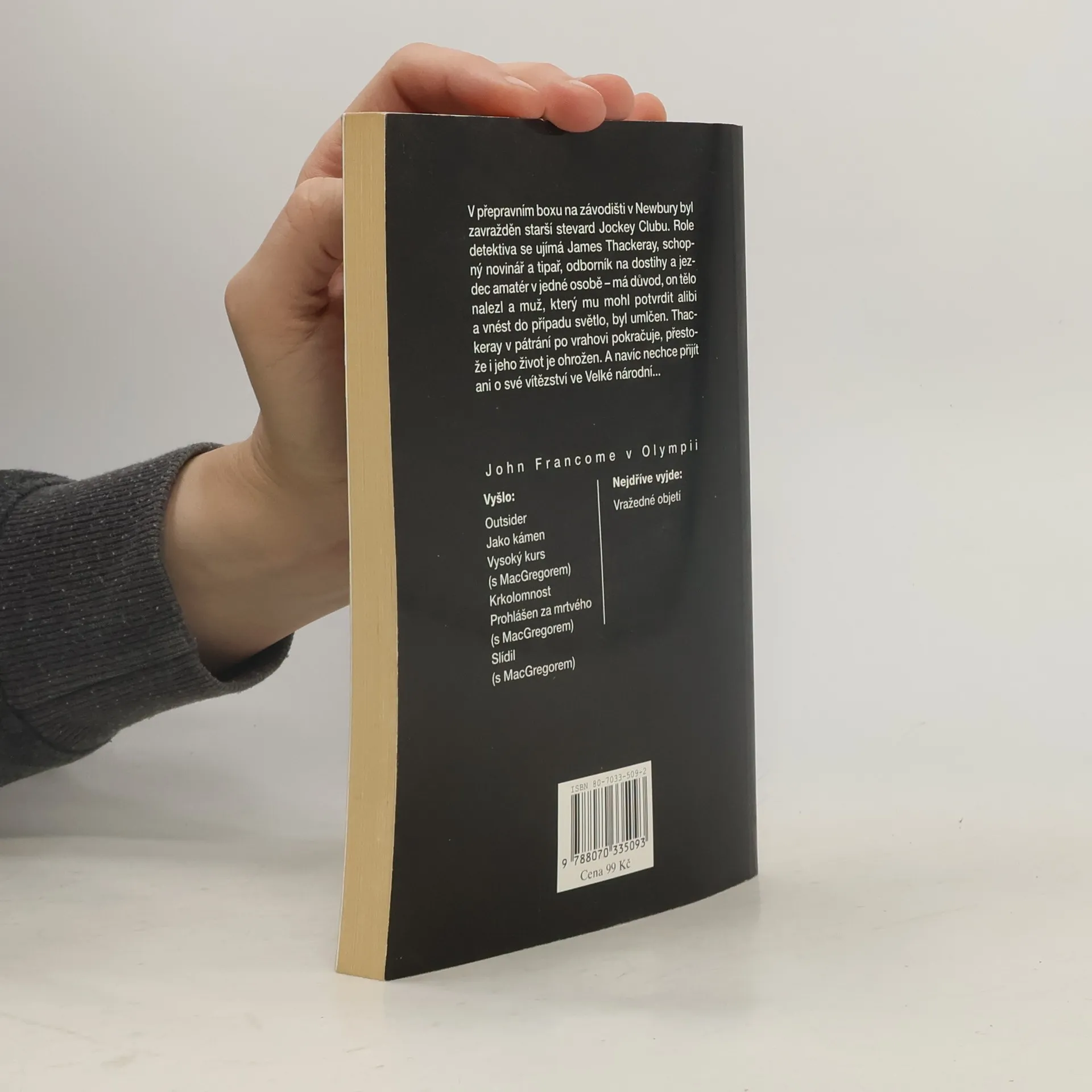 V přepravním boxu na závodišti v Newbury byl zavražděn starší stevard Jockey Clubu. Role detektiva se ujímá James Thackeray, schopný novinář a tipař, odborník na dostihy a jezdec amatér v jedné osobě – má důvod, on tělo nalezl a muž, který mu mohl potvrdit alibi a vnést do případu světlo, byl umlčen. Thackeray v pátrání po vrahovi pokračuje, přestože i jeho život je ohrožen. A navíc nechce přijít ani o své vítězství ve Velké národní…