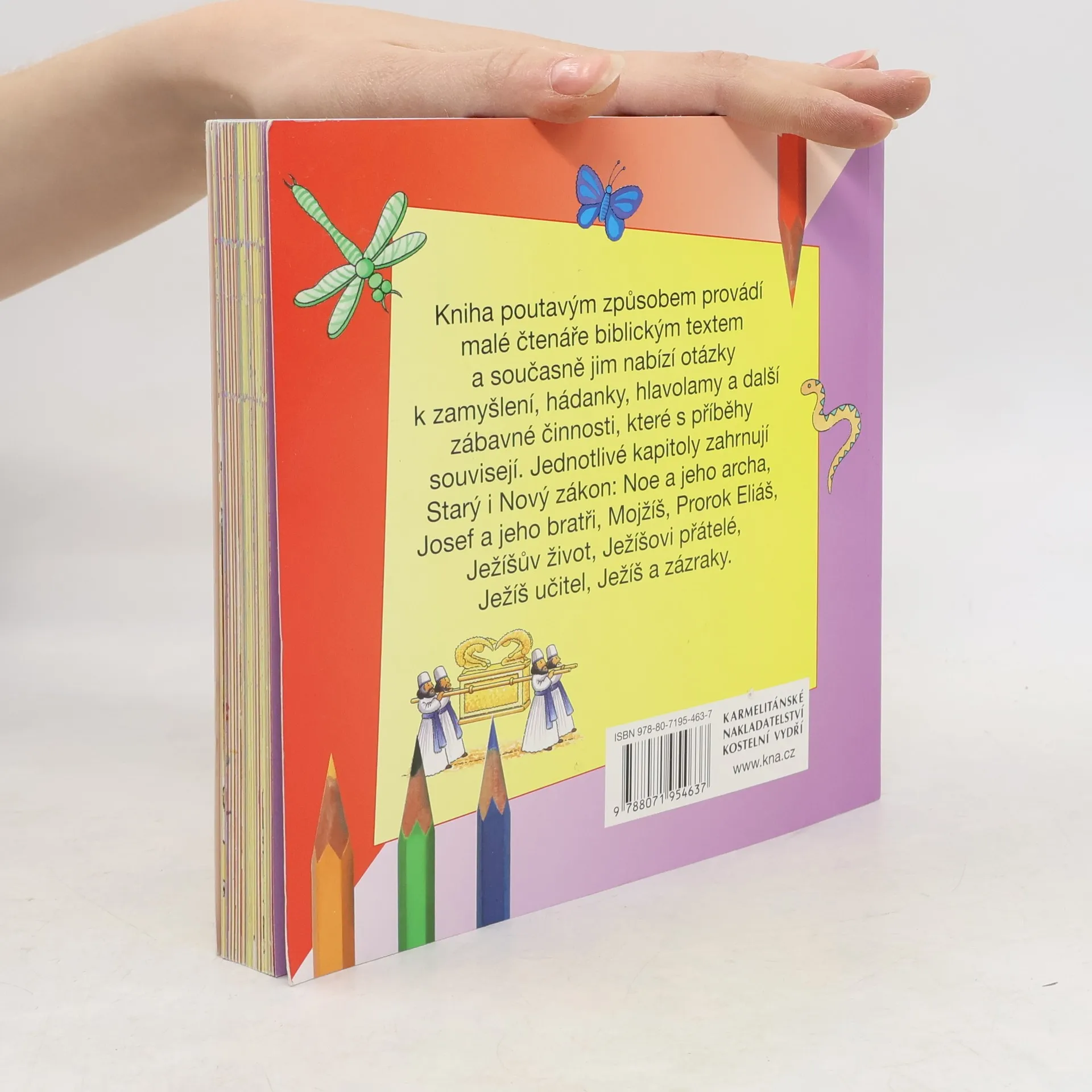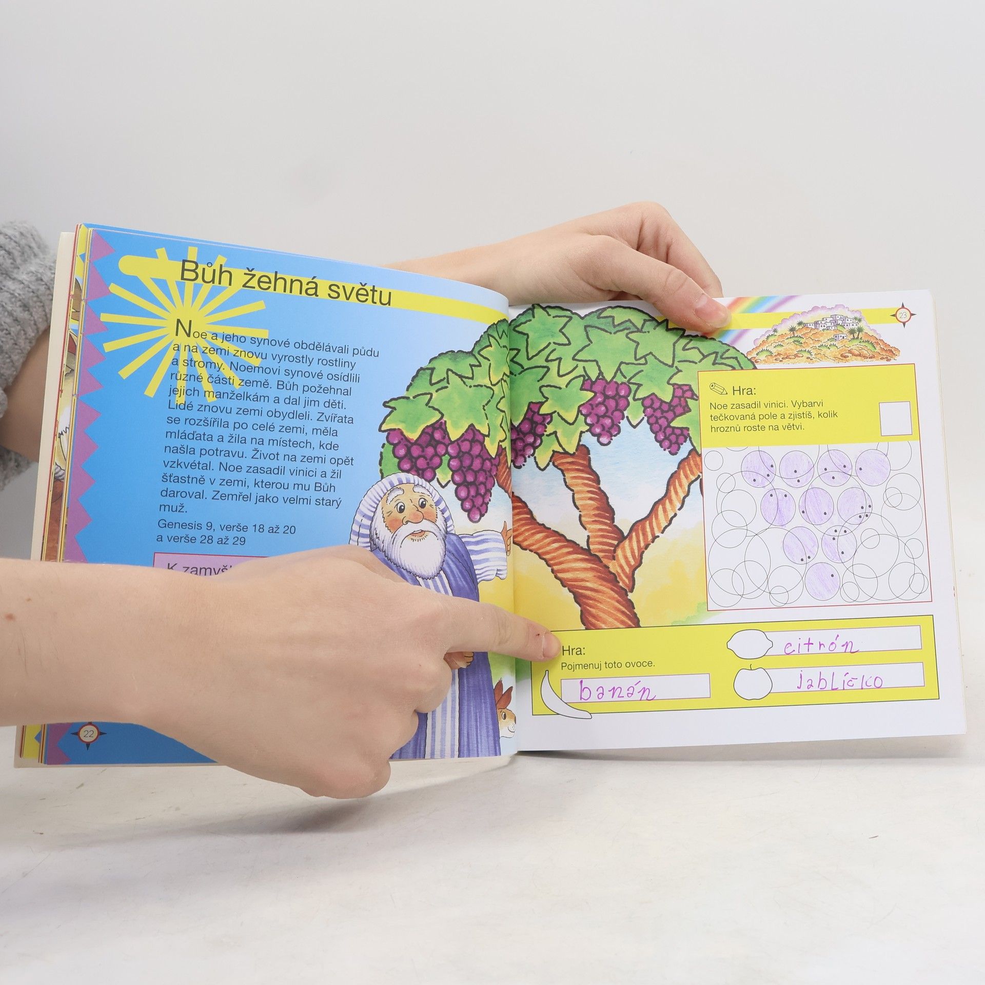 Pro děti ve věku od 5 let. Kniha přináší mladým výzkumníkům biblické příběhy a modlitby, ale také hádanky, hlavolamy a další zábavné činnosti, které s biblickými příběhy souvisejí. Je to pomůcka, která dětem ve věku do pěti let pomůže poznávat Bibli zajímavým způsobem a současně je přivádět ke čtení skutečného textu Bible a poznávání Ježíše. Za jednotlivými příběhy je uveden odkaz na text Bible. Leena Laneová byla původně učitelkou cizích jazyků, ale v současnosti se plně věnuje práci autorky a editorky křesťanských knížek pro děti a mládež. V Karmelitánském nakladatelství vyšla v roce 2008 její kniha Moje první Bible. Gillian Chapmanová ilustrovala již více než sto knížek pro děti.