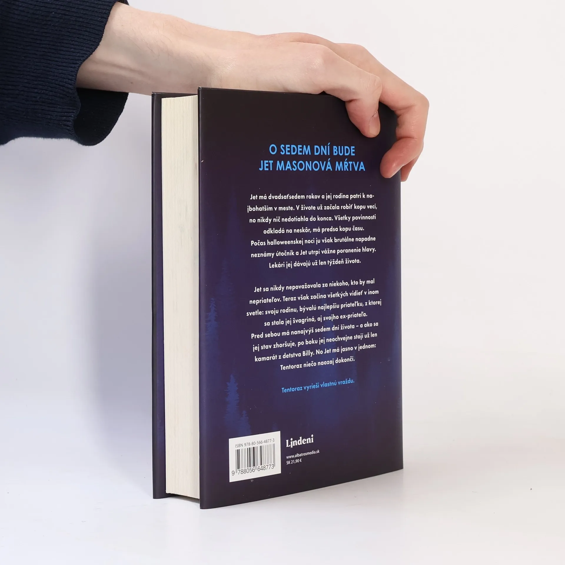 O sedem dní bude Jet Masonová mŕtva. Jet má dvadsaťsedem rokov a jej rodina patrí k najbohatším v meste. V živote už začala robiť kopu vecí, no nikdy nič nedotiahla do konca. Počas halloweenskej noci ju brutálne napadne neznámy útočník a Jet utrpí vážne poranenie hlavy. Lekári jej dávajú už len týždeň života. Ako sa jej stav zhoršuje, po boku jej neochvejne stojí už len kamarát z detstva Billy. No Jet má jasno v jednom: Tentoraz niečo naozaj dokončí. Tentoraz vyrieši vlastnú vraždu.