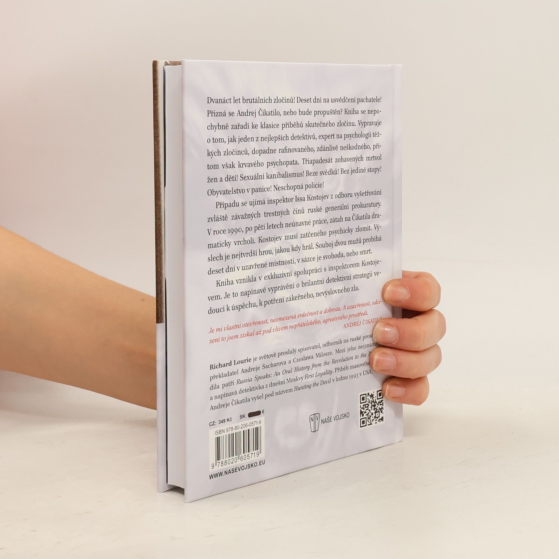 Dvanáct let brutálních zločinů! Deset dní na usvědčení pachatele! Přizná se Andrej Čikatilo, nebo bude propuštěn? Kniha se nepochybně zařadí ke klasice příběhů skutečného zločinu. Vypravuje o tom, jak jeden z nejlepších detektivů, expert na psychologii těžkých zločinců, dopadne rafinovaného, zdánlivě neškodného, přitom však krvavého psychopata. Třiapadesát zohavených mrtvol žen a dětí! Sexuální kanibalismus! Beze svědků! Bez jediné stopy! Obyvatelstvo v panice! Neschopná policie! Případu se ujímá inspektor Issa Kostojev z odboru vyšetřování zvláště závažných trestných činů ruské generální prokuratury. V roce 1990, po pěti letech neúnavné práce, zátah na Čikatila dramaticky vrcholí. Kostojev musí zatčeného psychicky zlomit. Výslech je nejtvrdší hrou, jakou kdy hrál. Souboj dvou mužů probíhá deset dní v uzavřené místnosti, v sázce je svoboda, nebo smrt. Kniha vznikla v exkluzivní spolupráci s inspektorem Kostojevem. Je to napínavé vyprávění o brilantní detektivní strategii vedoucí k úspěchu, k potření zákeřného, nevýslovného zla. Je mi vlastní otevřenost, neomezená srdečnost a dobrota. A uzavřenost, odcizeníto jsem získal až pod vlivem nepřátelského, agresivního prostředí.