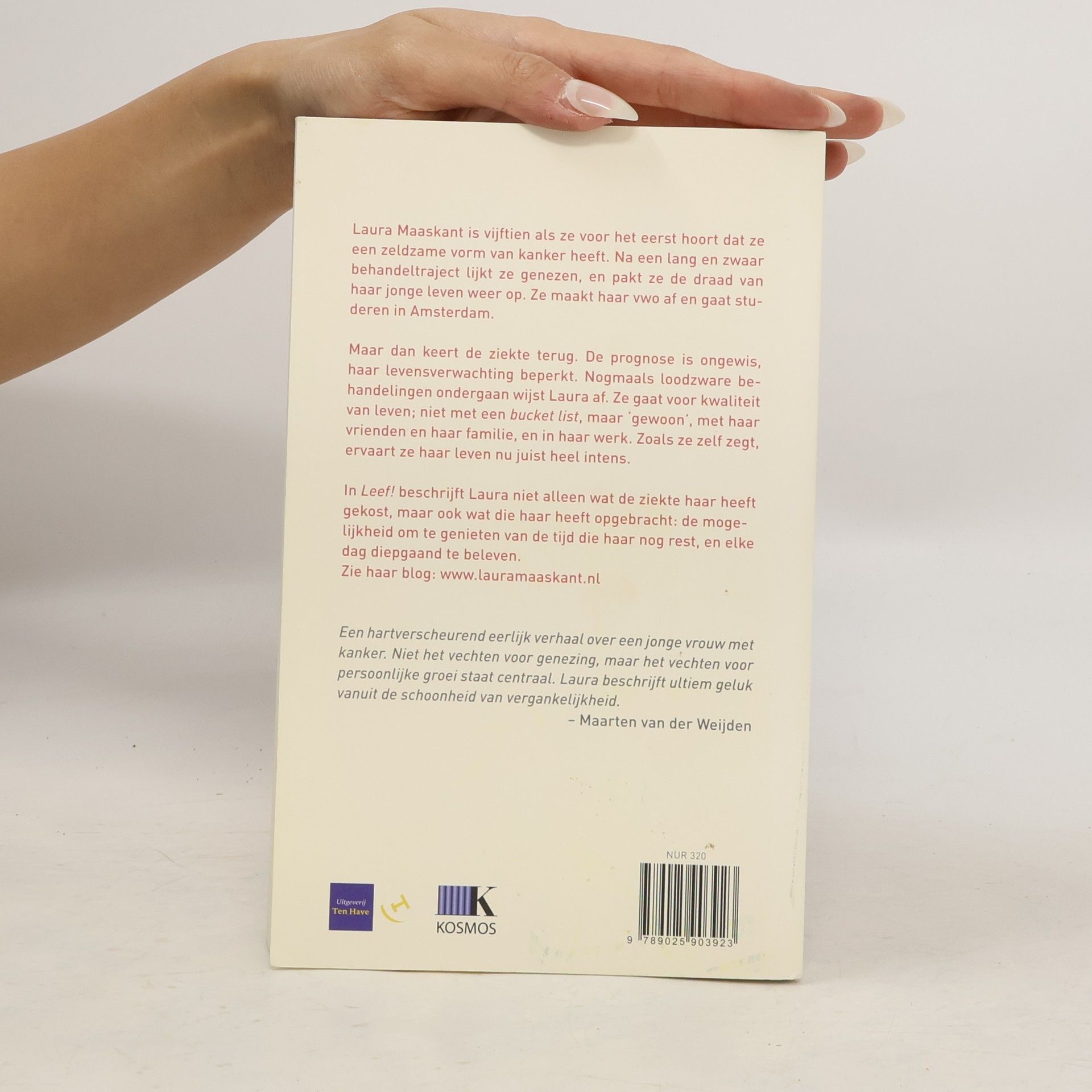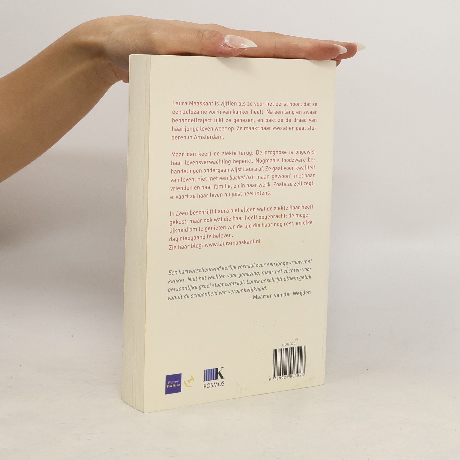 In LEEF! vertelt Laura Maaskant hoe haar leven is veranderd na de diagnose 'kanker'. Die diagnose kreeg ze op haar vijftiende, en vier jaar later opnieuw. Laura wordt na een lang en zwaar behandeltraject genezen verklaard. Ze pakt haar leven weer op waar ze gebleven was: na haar vwo gaat ze studeren in Amsterdam. Als de ziekte kort daarna terugkeert, is de kans op genezing nihil. Ze heeft nu een levensverwachting van twee jaar. Nogmaals loodzware behandelingen ondergaan wijst Laura af. Ze gaat voor kwaliteit van leven. Niet met een bucket list, maar in haar werk, met haar vrienden en haar familie. Zoals ze zelf zegt, ervaart ze haar leven nu juist heel intens. Laura's ziekte brengt niet alleen rampspoed, maar ook de mogelijkheid om te genieten van de tijd die haar nog rest. Haar leven is 'in goud veranderd'. 'Een hartverscheurend eerlijk verhaal over een jong meisje met kanker. Niet het vechten voor genezing, maar het vechten voor persoonlijke groei staat centraal.' - Maarten van der Weijden