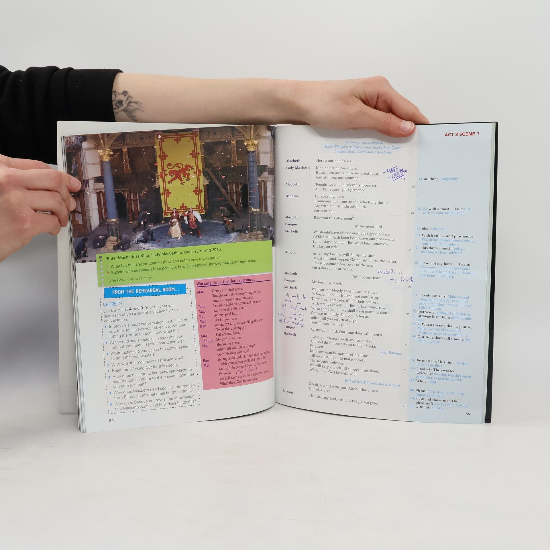 Typescript, dated October 1, 2013. Heavily marked with colored ink . Used by The New York Public Library's Theatre on Film and Tape Archive on January 10, 2014, when videotaping the stage production starring Ethan Hawke at the Vivian Beaumont Theater New York, N.Y. The production opened on November 21, 2013, and was directed by Jack O'Brien. Other cast members were Anne-Marie Duff as Lady Macbeth, Richard Easton as Duncan, Bryan d'Arcy James as Banquo, and Malcolm Gets, John Glover and Bryon Jennings as witches.