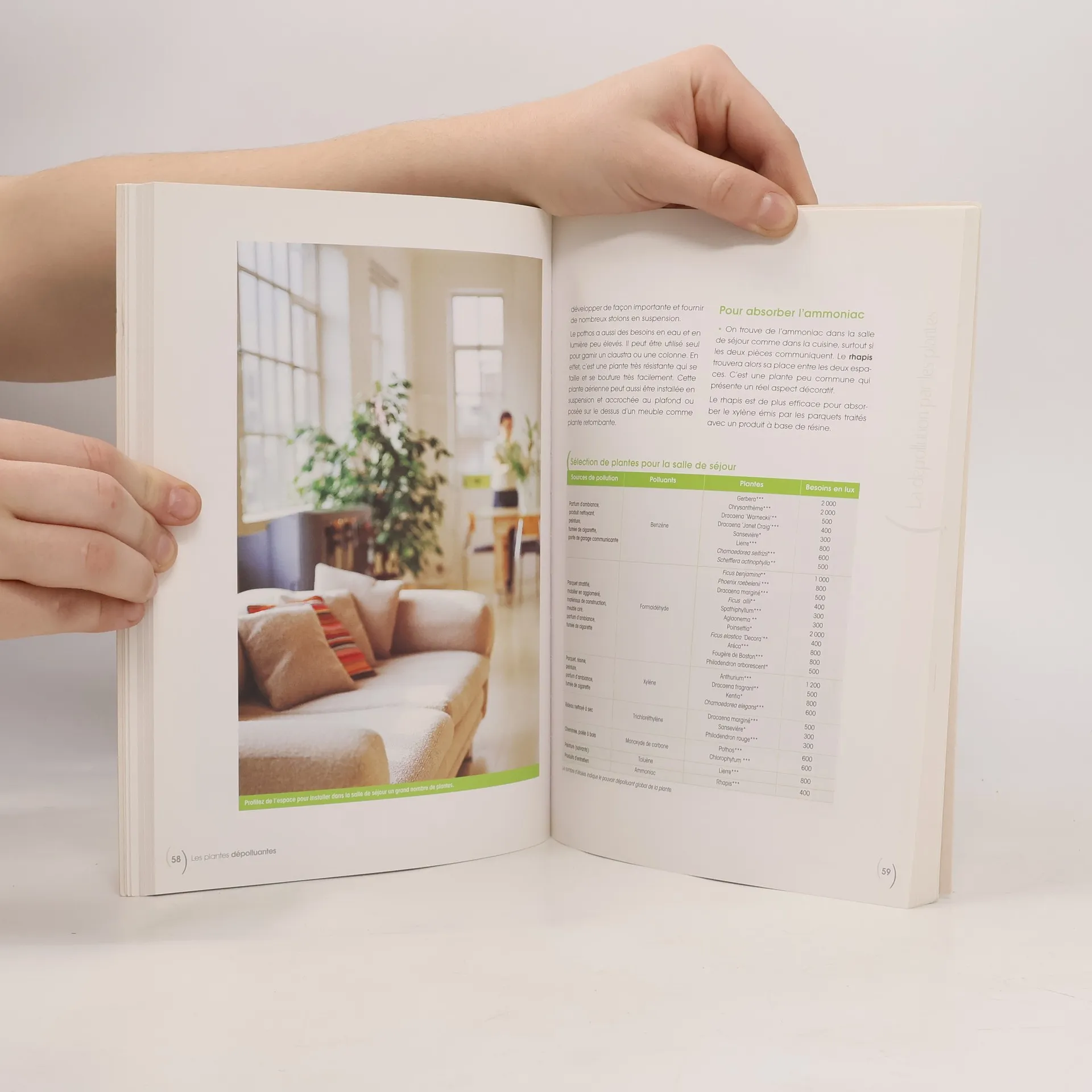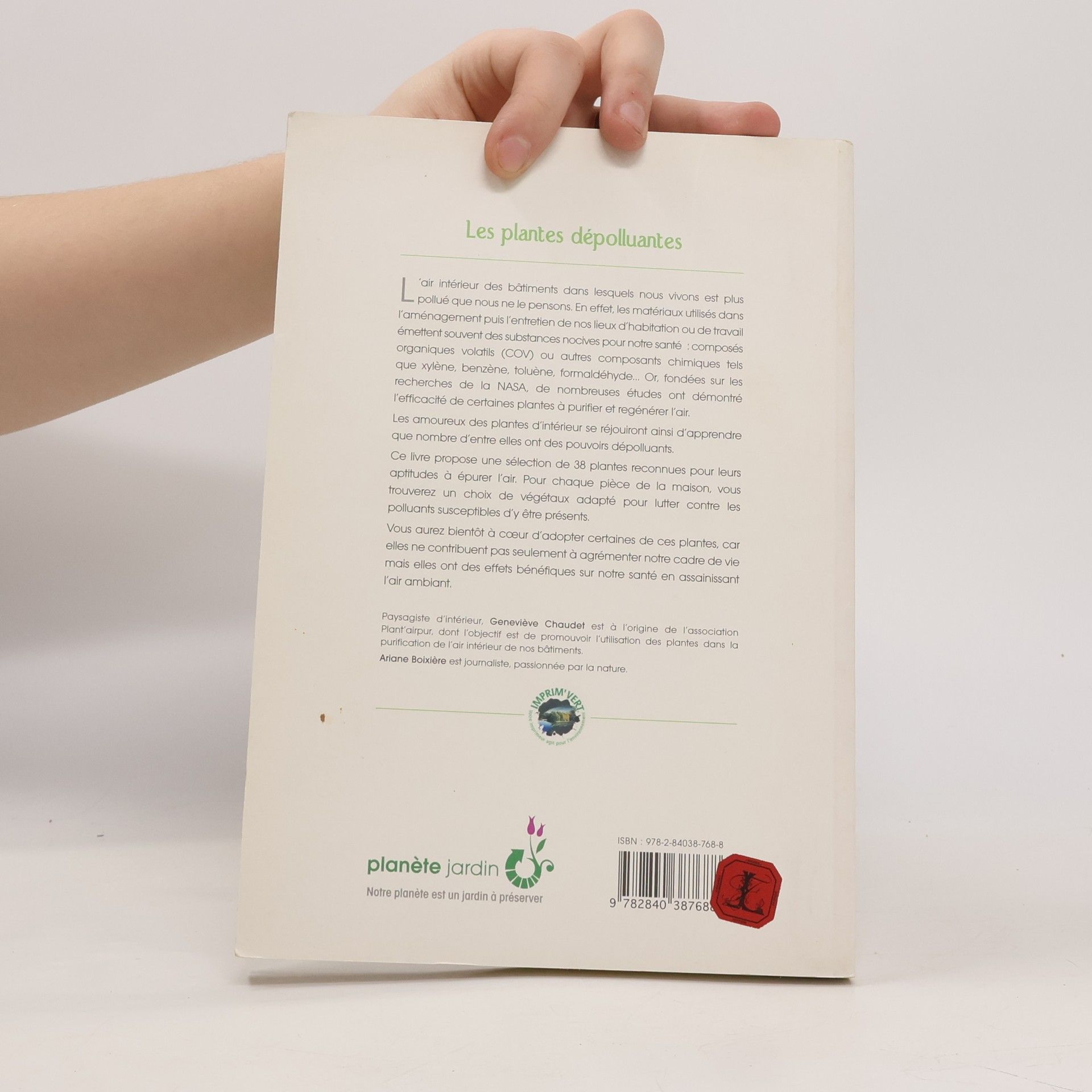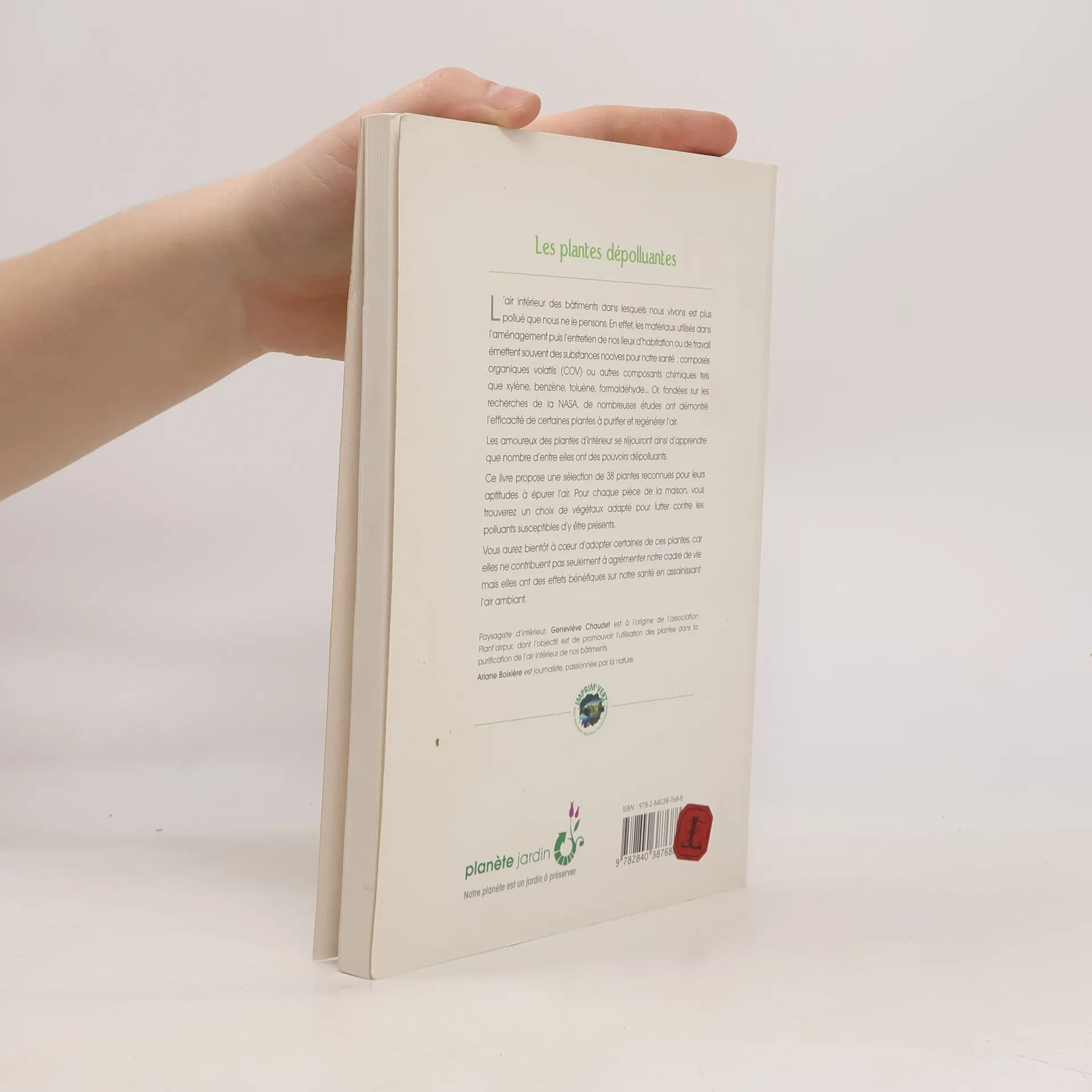 L'air intérieur des bâtiments dans lesquels nous vivons est plus pollué que nous ne le pensons. En effet, les matériaux utilisés dans l'aménagement puis l'entretien de nos lieux d'habitation ou de travail émettent souvent des substances nocives pour notre santé : composés organiques volatils (COV) ou autres composants chimiques tels que xylène, benzène, toluène, formaldéhyde... Or, fondées sur les recherches de la NASA. de nombreuses études ont démontré l'efficacité de certaines plantes à purifier et régénérer l'air. Les amoureux des plantes d'intérieur se réjouiront ainsi d'apprendre que nombre d'entre elles ont des pouvoirs dépolluants. Ce livre propose une sélection de 38 plantes reconnues pour leurs aptitudes à épurer l'air. Pour chaque pièce de la maison, vous trouverez un choix de végétaux adapté pour lutter contre les polluants susceptibles d'y être présents. Vous aurez bientôt à cœur d'adopter certaines de ces plantes, car elles ne contribuent pas seulement à agrémenter notre cadre de vie mais elles ont des effets bénéfiques sur notre santé en assainissant l'air ambiant.