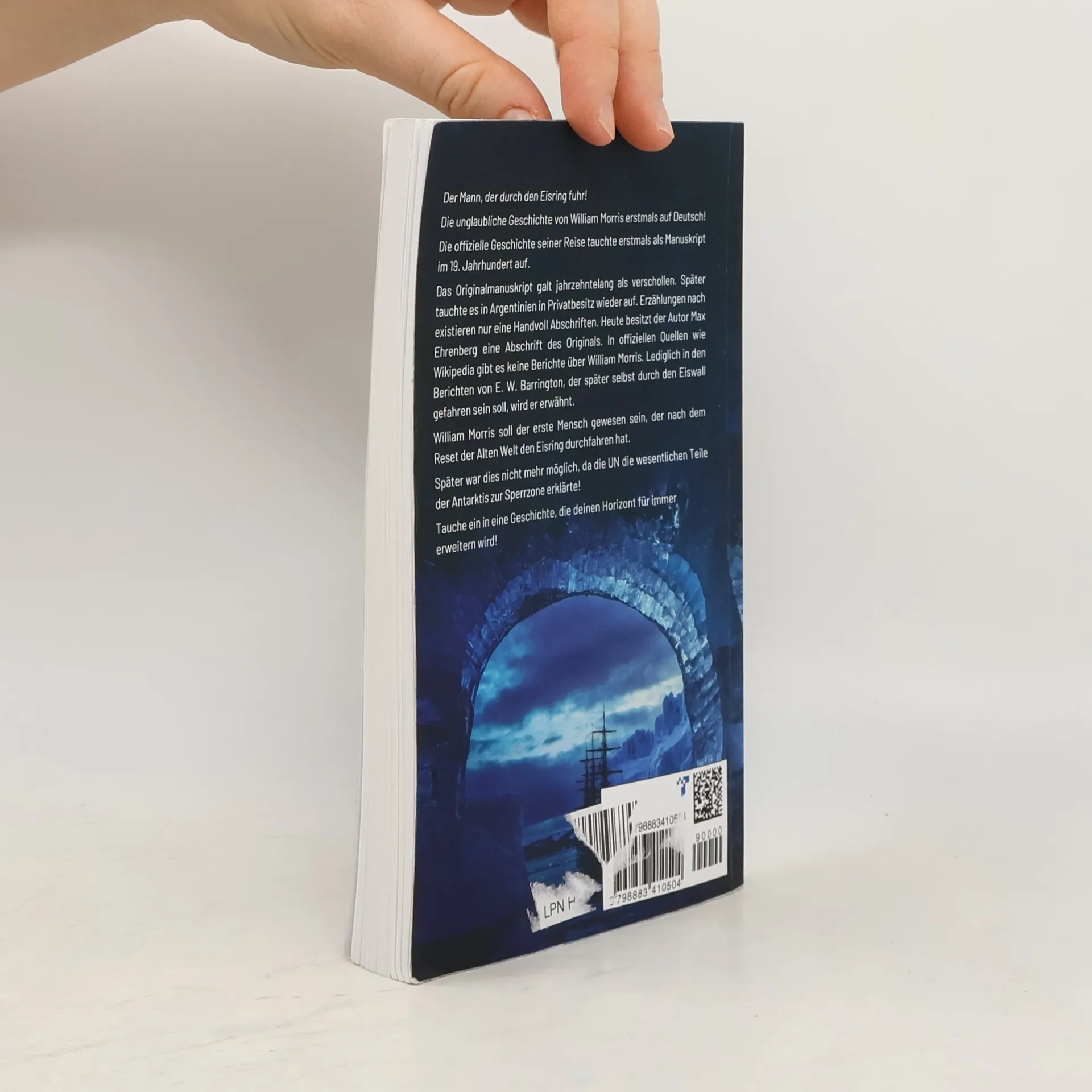 Der Mann, der durch den Eisring fuhr!Die unglaubliche Geschichte von William Morris erstmals auf Deutsch!Die offizielle Geschichte seiner Reise tauchte zum ersten Mal als Manuskript im 19. Jahrhundert auf.Das Originalmanuskript galt jahrzehntelang als verschollen. Später tauchte es in Argentinien in Privatbesitz wieder auf. Erzählungen nach existieren nur eine Handvoll Abschriften. Heute besitzt der Autor Max Ehrenberg eine Abschrift des Originals. In offiziellen Quellen wie Wikipedia gibt es keine Berichte über William Morris. Lediglich in den Berichten von E. W. Barrington, der später selbst durch den Eiswall gefahren sein soll, wird er erwähnt.William Morris soll der erste Mensch gewesen sein, der nach dem Reset der Alten Welt den Eisring durchfahren hat.Später war dies nicht mehr möglich, da die UN die wesentlichen Teile der Antarktis zur Sperrzone erklärte!Tauche ein in eine Geschichte, die deinen Horizont für immer erweitern wird!
