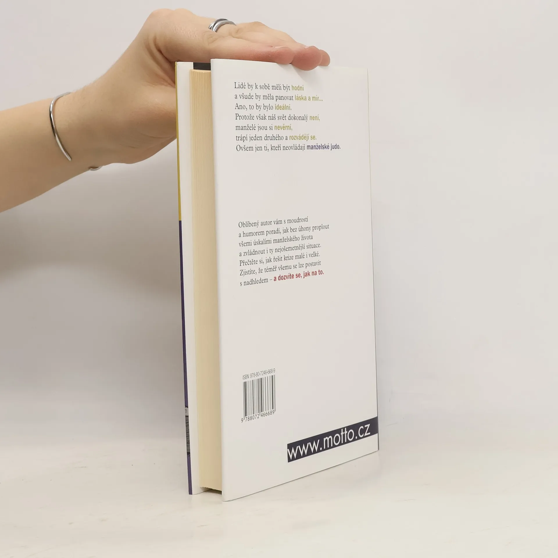 Lidé by k sobě měli být hodní a všude by měla panovat láska a mír… Ano, to by bylo ideální. Protože však náš svět dokonalý není, manželé jsou si nevěrní, trápí jeden druhého a rozvádějí se. Ovšem jen ti, kteří neovládají manželské judo. Oblíbený autor Vám s moudrostí a humorem poradí, jak bez úhony proplout všemi úskalími manželského života a zvládnout i ty nejošemetnější situace. Přečtěte si, jak řešit krize malé i velké. Zjistíte, že téměř všemu se lze postavit s nadhledem – a dozvíte se, jak na to. 5. vydání ... vč. 1. vydání eKnihy ...
