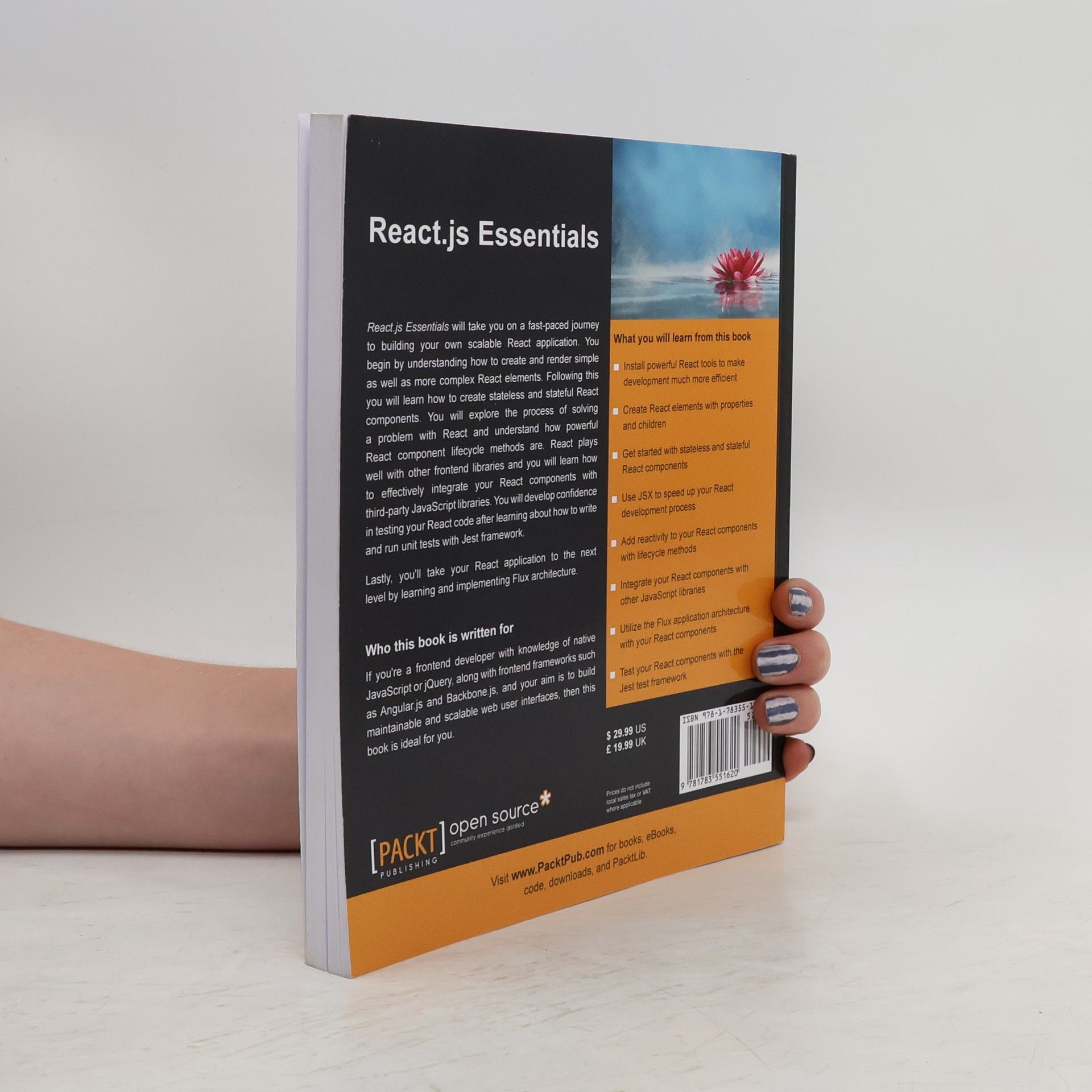 This fast-paced guide is designed for building scalable and maintainable web applications using React.js. It focuses on creating performant user interfaces and reusable components, streamlining the development process. Ideal for front-end developers familiar with jQuery, Angular.JS, Backbone.JS, or native JavaScript, this resource equips you with the tools to harness the power of React.js effectively. You will learn to install essential React.js tools, create elements with properties and children, and develop both stateless and stateful components. The tutorial emphasizes using JSX for faster development, adding reactivity through lifecycle methods, and integrating React components with other JavaScript libraries. Additionally, it covers the Flux architecture for application management and testing components with the Jest framework. React.js has gained popularity among major organizations like Facebook and Instagram, fostering a vibrant community. This guide will take you through building a maintainable React.js application, enabling you to create user interface elements, manage component interactions, and implement lifecycle methods. You’ll also explore the Flux architecture and learn how to scale your application while minimizing complexity. With a hands-on approach and ample code examples, this book ensures a rapid learning experience in React.js development.