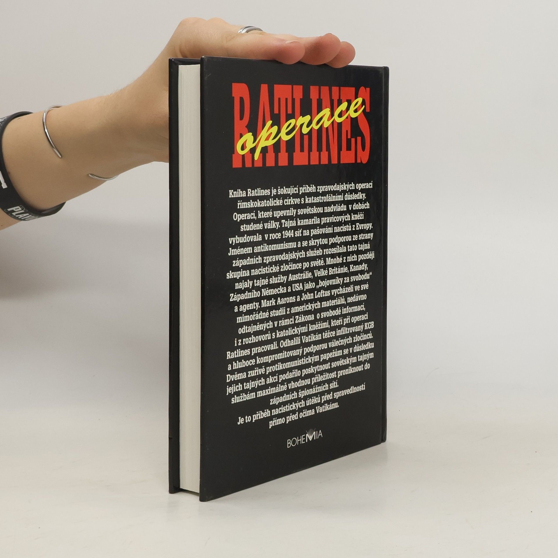 Šokující fakta o nacistických sítích upředených Vatikánem a vyzrazených západními zpravodajskými službami Moskvě. Kniha Ratlines je šokující příběh zpravodajských operací římskokatolické církve s katastrofálními důsledky. Operací, které upevnily sovětskou nadvládu v dobách studené války. Tajná kamarila pravicových kněží vybudovala v roce 1944 síť na pašování nacistů z Evropy. Jméneme antikomunismu a se skrytou podporou ze strany západních zpravodajských služeb rozesílala tato tajná skupina nacistické zločince po světe. Mnohé z nich později najaly tajné služby Austrálie, Velké Británie, Kanady, Západního Německa a USA jako „bojovníky za svobodu“ a agenty. Mark Aarons a John Loftus vycházeli ve své mimořádné studii z amerických materiálů, nedávno odtajněných v rámci Zákona o svobodě informací, i z rozhovorů s katolickými kněžími, kteří pri operaci Ratlines pracovali. Odhalili Vatikán těžce infiltrovaný KGB a hluboce kompromitovaný podporou válečných zločinců. Dvěma zuřivě protikomunistickým papežům se v důsledku jejich tajných akcí podařilo poskytnout sovětským tajným službám maximálně vhodnou příležitost proniknout do západních špionážních sítí. Je to přiběh nacistických útěků před spravedlností přímo před očima Vatikánu.