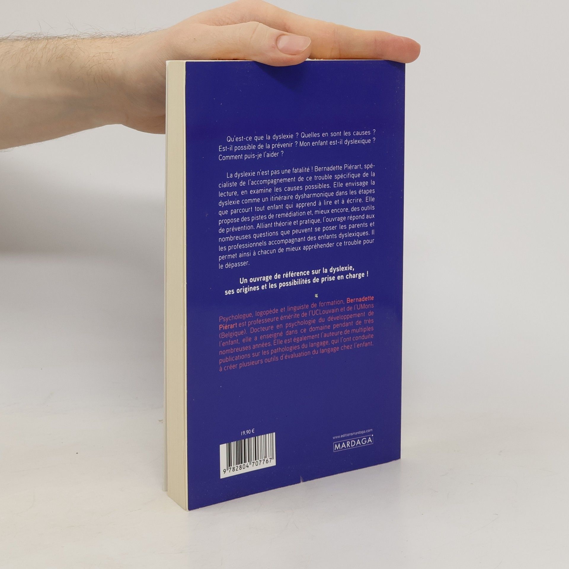 Un guide pratique qui vous aidera à mieux comprendre la dyslexie et vous donnera des piste afin de l’accompagner au mieux !Qu’est-ce que la dyslexie ? Quelles en sont les causes ? Est-il possible de la prévenir ? Mon enfant est-il dyslexique ? Comment puis-je l’aider ?La dyslexie n’est pas une fatalité ! Bernadette Piérart, spécialiste de l’accompagnement de ce trouble spécifique de la lecture, en examine les causes possibles. Elle envisage la dyslexie comme un itinéraire dysharmonique dans les étapes que parcourt tout enfant qui apprend à lire et à écrire. Elle propose des pistes de remédiation et, mieux encore, des outils de prévention. Alliant théorie et pratique, l’ouvrage répond aux nombreuses questions que peuvent se poser les parents et les professionnels accompagnant des enfants dyslexiques. Il permet ainsi à chacun de mieux appréhender ce trouble pour le dépasser !Un ouvrage de référence sur la dyslexie, ses origines et les possibilités de prise en charge !À PROPOS DE L'AUTEUREPsychologue, logopède et linguiste de formation, Bernadette Piérart est professeure émérite de l’UCLouvain et de l’UMons (Belgique). Docteure en psychologie du développement de l’enfant, elle a enseigné dans ce domaine pendant de très nombreuses années. Elle est également l’auteure de multiples publications sur les pathologies du langage, qui l’ont conduite à créer plusieurs outils d’évaluation du langage chez l’enfant.
