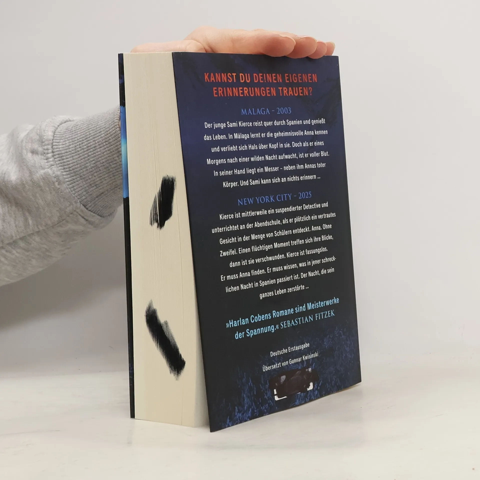 MALAGA – 2003 Der junge Sami Kierce reist quer durch Spanien und genießt das Leben. In Malaga lernt er die geheimnisvolle Anna kennen und verliebt sich Hals über Kopf in sie. Doch als er eines Morgens nach einer wilden Nacht aufwacht, ist er voller Blut. In seiner Hand liegt ein Messer – neben ihm Annas toter Körper. Und Sami kann sich an nichts erinnern … NEW YORK CITY – 2025 Kierce ist mittlerweile ein suspendierte Detective und unterrichtet an der Abendschule, als er plötzlich ein vertrautes Gesicht in der Menge von Schülern entdeckt. Anna. Ohne Zweifel. Einen flüchtigen Moment treffen sich ihre Blicke, dann ist sie verschwunden. Kierce ist fassungslos. Er muss Anna finden. Er muss wissen, was in jener schrecklichen Nacht in Spanien passiert ist. Die Nacht, die sein ganzes Leben zerstörte …