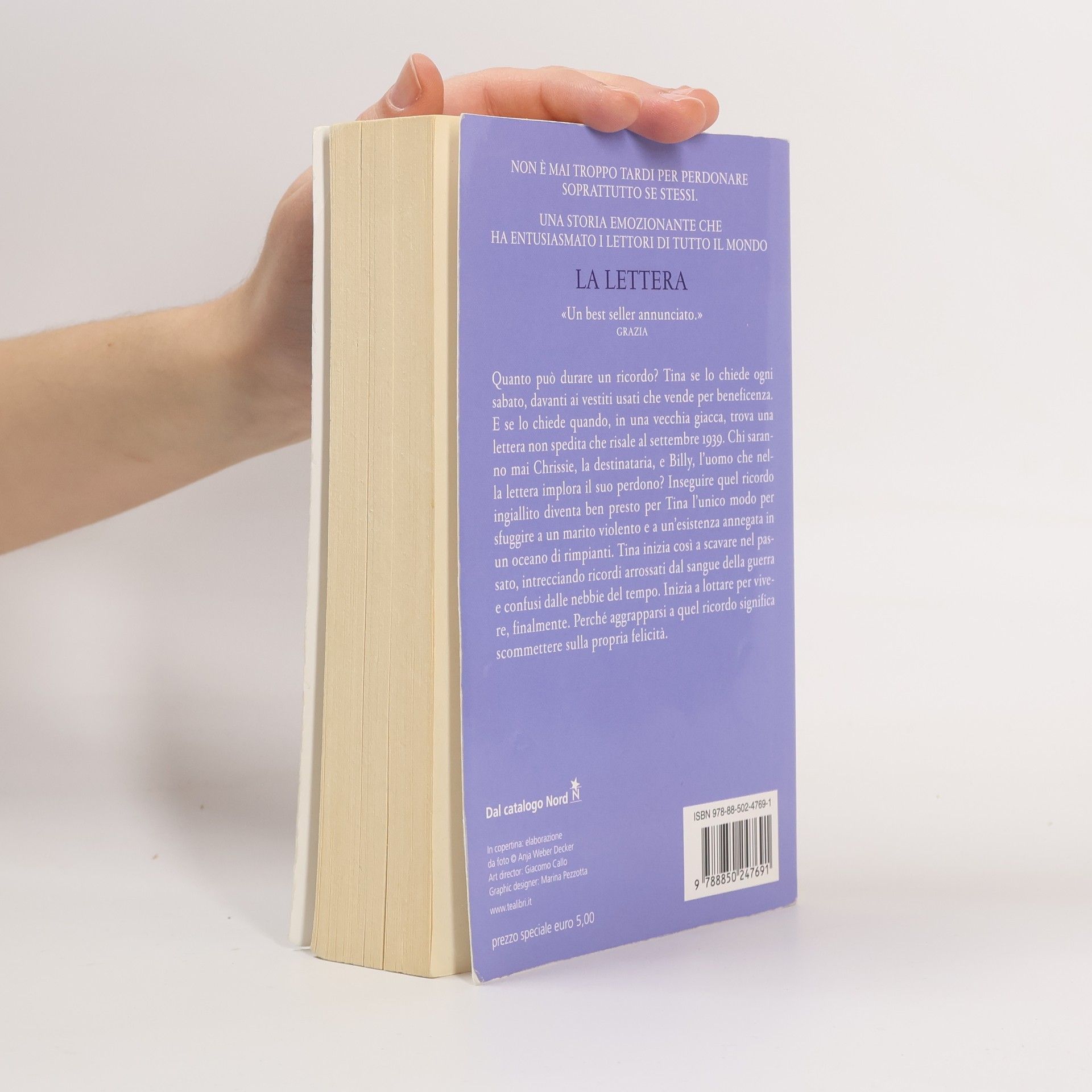 Quanto può durare un ricordo? Tina se lo chiede ogni sabato, davanti ai vestiti usati che lei vende per beneficenza. E se lo chiede quando, in una vecchia giacca, trova una lettera che risale agli anni '40. E che non è mai stata spedita. Chi saranno mai Chrissie, la destinataria, e Billy, l'uomo che nella lettera implora il suo perdono? Qual è la storia che li unisce? E che ne è stato di loro? Inseguire quel ricordo ingiallito diventa ben presto per Tina una ragione di vita, l'unico modo per sfuggire a un marito violento e a un'esistenza annegata in un oceano di rimpianti. Con una passione e un coraggio che non sapeva neppure di avere, Tina inizia quindi a scavare nel passato, intrecciando ricordi arrossati dal sangue della guerra e confusi dalle nebbie del tempo. Inizia a lottare per cambiare. Per vivere, finalmente. Perché sa che aggrapparsi a quel ricordo significa tenere accesa la speranza, sfidare il destino, scommettere sulla propria felicità. Che non è mai troppo tardi per perdonare. Soprattutto se stessi.