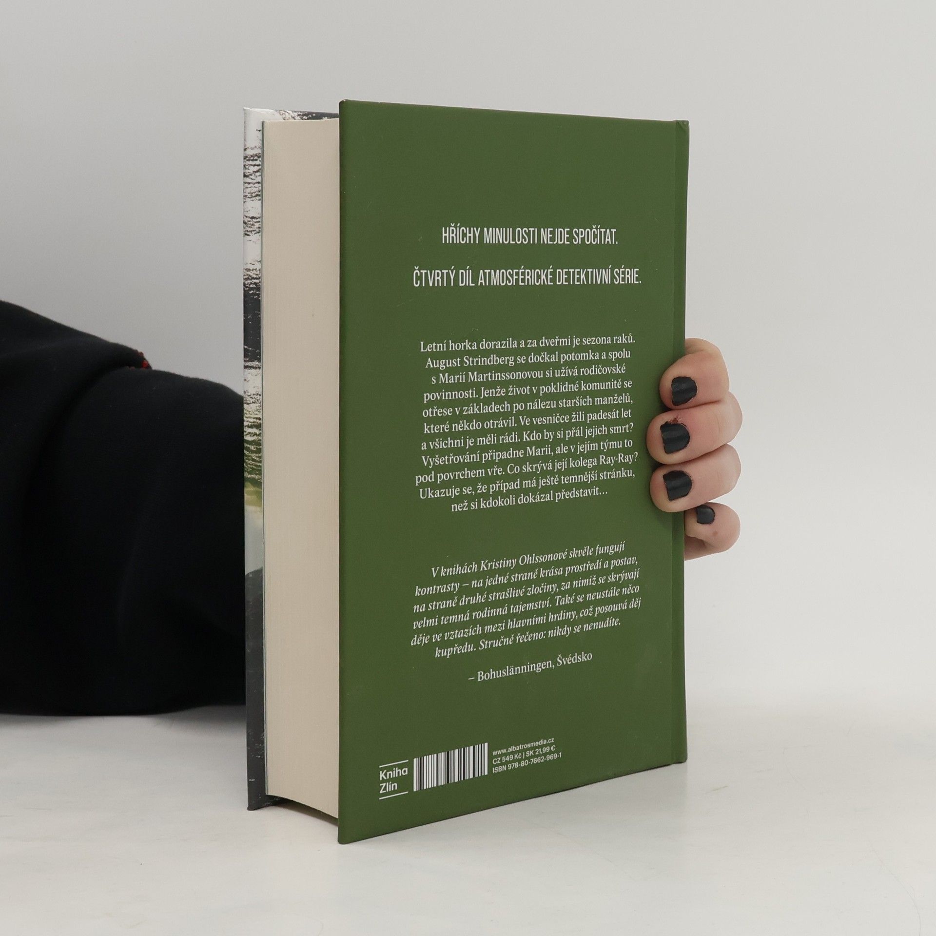 Hříchy minulosti nejde spočítat. Čtvrtý díl atmosférické detektivní série. Letní horka dorazila a za dveřmi je sezóna raků. August Strindberg se dočkal potomka a spolu s Marií Martinssonovou si užívá rodičovské povinnosti. Jenže život v poklidné komunitě se otřese v základech po nálezu starších manželů, které někdo otrávil. Ve vesničce žili padesát let a všichni je měli rádi. Kdo by si přál jejich smrt? Vyšetřování připadne Marii, ale v jejím týmu to pod povrchem vře. Co skrývá její kolega Ray-Ray? Ukazuje se, že případ má ještě temnější stránku, než si kdokoli dokázal představit…