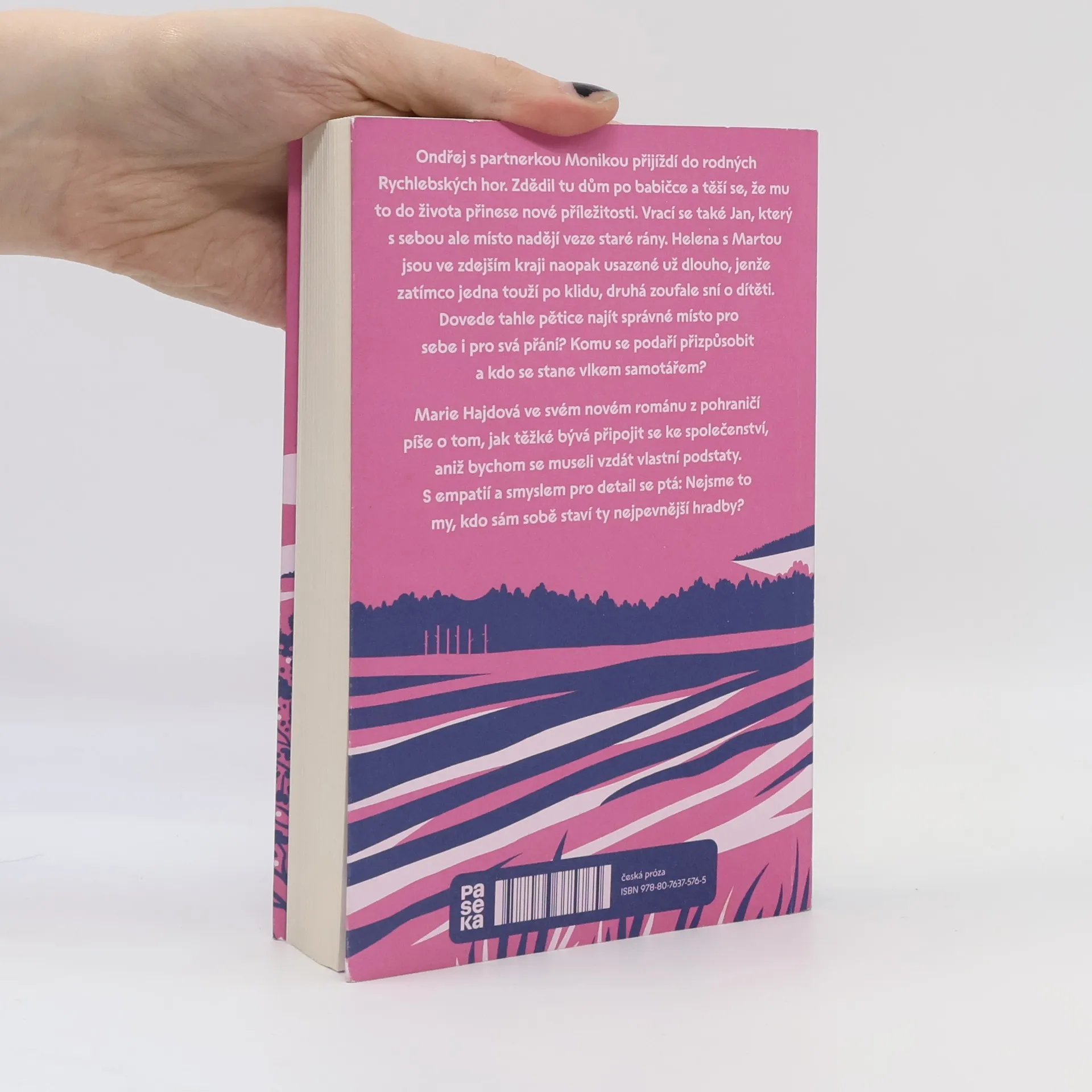 Ondřej s partnerkou Monikou přijíždí do rodných Rychlebských hor. Zdědil tu dům po babičce a těší se, že mu to do života přinese nové příležitosti. Vrací se také Jan, který s sebou ale místo nadějí veze staré rány. Helena s Martou jsou ve zdejším kraji naopak usazené už dlouho, jenže zatímco jedna touží po klidu, druhá zoufale sní o dítěti. Dovede tahle pětice najít správné místo pro sebe i pro svá přání? Komu se podaří přizpůsobit a kdo se stane vlkem samotářem? Marie Hajdová ve svém novém románu z pohraničí píše o tom, jak těžké bývá připojit se ke společenství, aniž bychom se museli vzdát vlastní podstaty. S empatií a smyslem pro detail se ptá: Nejsme to my, kdo sám sobě staví ty nejpevnější hradby?