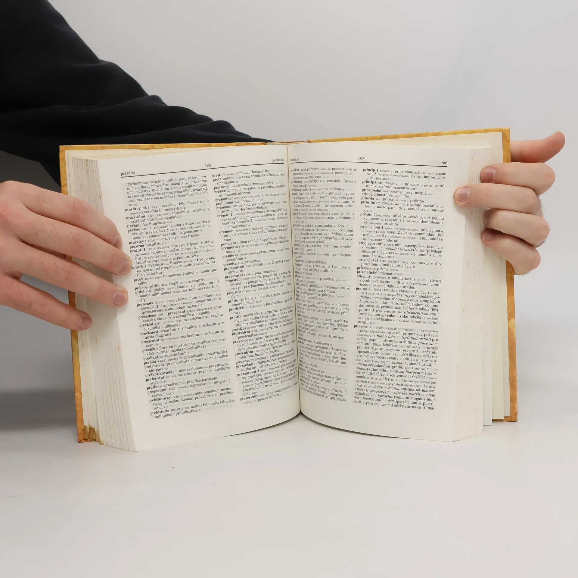 Starověká a současná latina. Předmluva a ostatní text ve slovníku je vždy v češtině a následně i v latině.