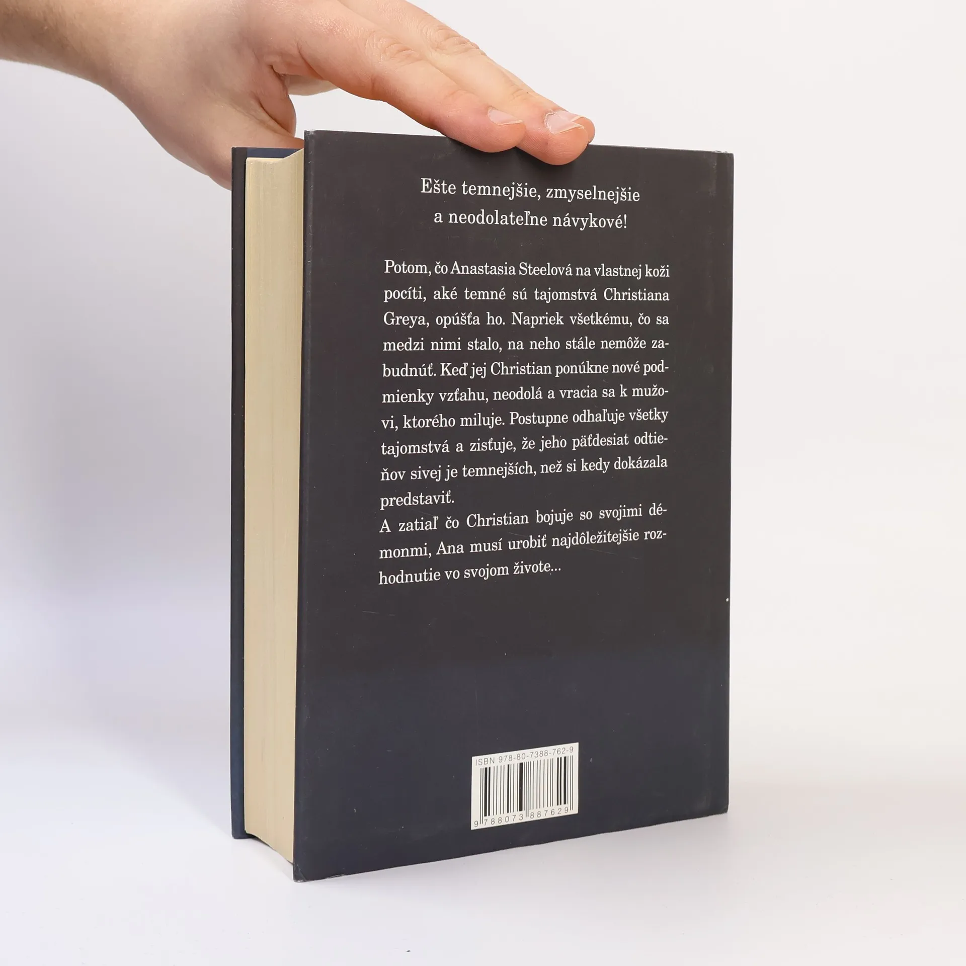 Druhý diel erotického románu o temných túžbach v každom z nás… Potom čo Anastasia Steeleová na vlastnej koži pocíti, ako temné sú tajomstvá Christiana Greye, opúšťa ho. Napriek tomu, čo sa medzi nimi stalo, na neho stále nemôže zabudnúť. Keď jej teda Christian predloží novú zmluvu, nemôže odolať a vracia sa k mužovi, ktorého miluje. Postupne odhaľuje všetky tajomstvá a zisťuje, že jeho päťdesiat odtieňov je oveľa temnejších, ako si mohla predstaviť. A zatiaľ čo Christian bojuje so svojimi démonmi, Ana musí učiniť najdôležitejšie rozhodnutie vo svojom živote...