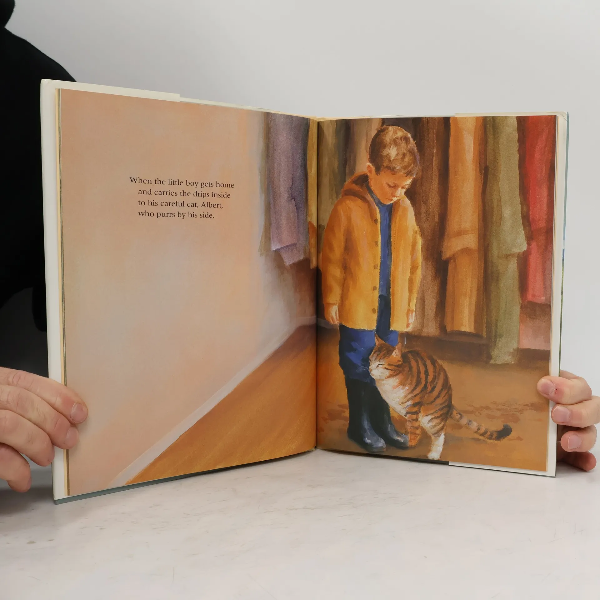 A small boy enjoys all the special sights and sounds of a rainy day, from his early morning walk through puddles to get to school, to the soothing melody that the rain plays at bedtime.