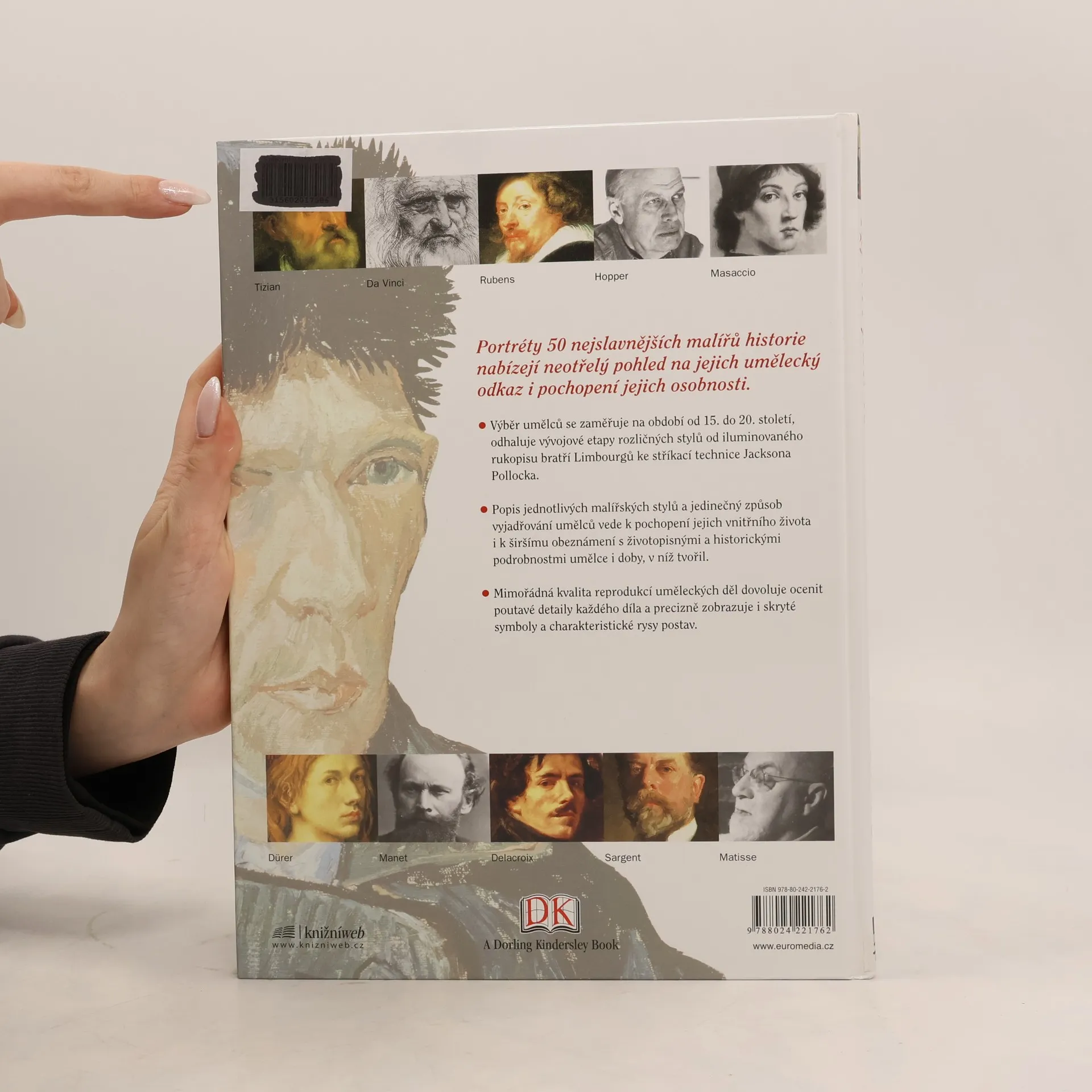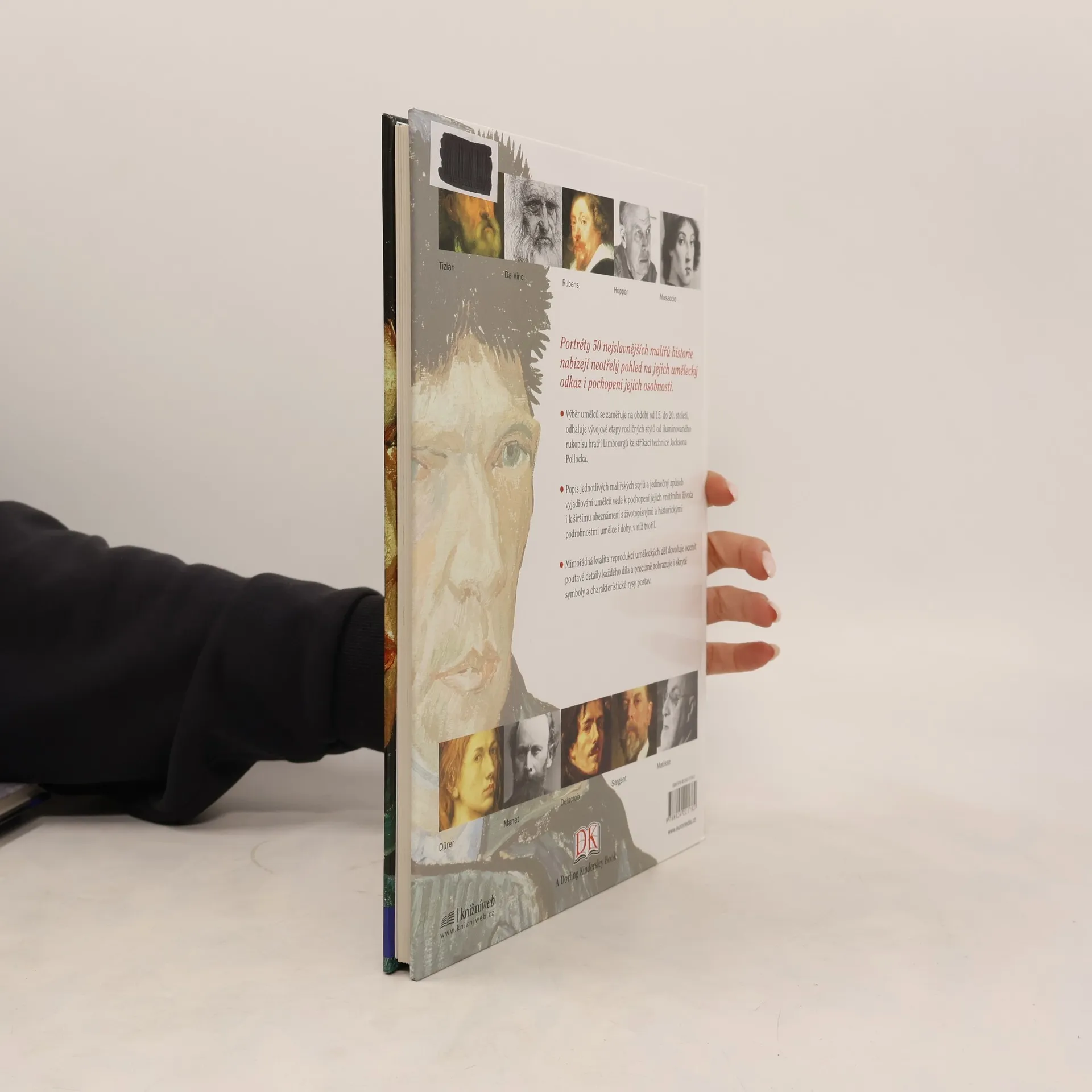 Portréty 50 nejslavnějších malířů historie nabízejí neotřelý pohled na jejich umělecký odkaz i pochopení jejich osobnosti. Výběr umělců se zaměřuje na období od 15. do 20. století, odhaluje vývojové etapy rozličných stylů od iluminovaného rukopisu bratří Limbourgů ke stříkací technice Jacksona Pollocka. Popis jednotlivých malířských stylů a jedinečný způsob vyjadřování umělců vede k pochopení jejich vnitřního života i k širšímu obeznámení s životopisnými a historickými podrobnosti umělce i doby, v níž tvořil. Mimořádná kvalita reprodukcí uměleckých děl dovoluje ocenit poutavé detaily každého díla a precizně zobrazuje i skryté symboly a charakteristické rysy postav. 2. vydání.