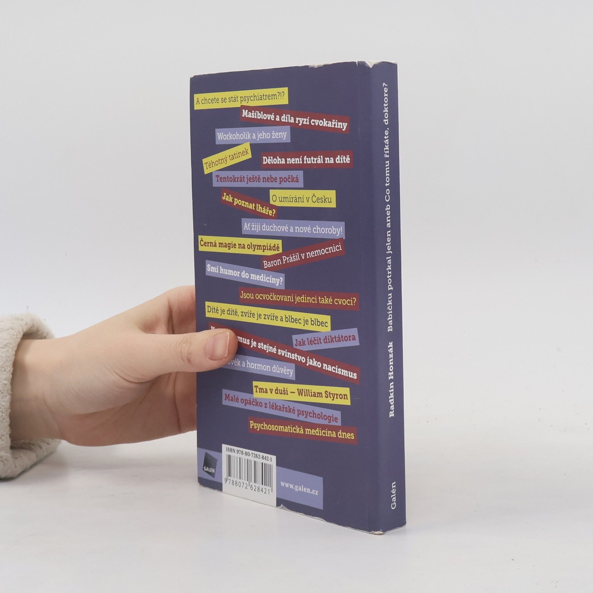 S texty našeho předního psychiatra, MUDr. Radkina Honzáka, CSc., se mohou čtenáři a posluchači setkávat již po řadu let v denním tisku, knižních publikacích, na přednáškách, v rozhlasových relacích a v posledních několika letech i na jeho internetovém blogu. Radkin Honzák patří k autorům, jejichž bezprostřední reakce na události kolem nás jsou vlastně malými psychologickými studiemi. Podávají zasvěcený - ať již kritický nebo shovívavý - obraz dnešní doby, navíc většinou s charakteristickým humorem. Z několika desítek svých populárně vědeckých textů autor spolu s redaktorem Milošem Voráčem vybrali a sestavili knížku esejů, sloupků, komentářů i zamyšlení. Výtvarného doprovodu se ujal klasik české karikatury Miroslav Barták.